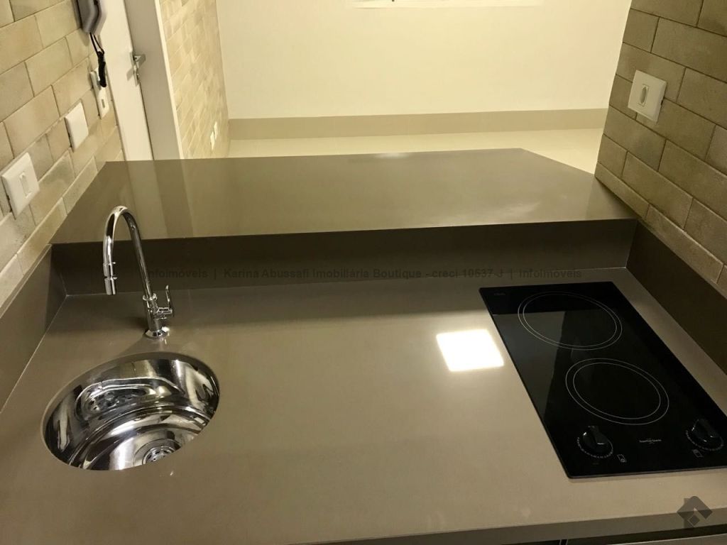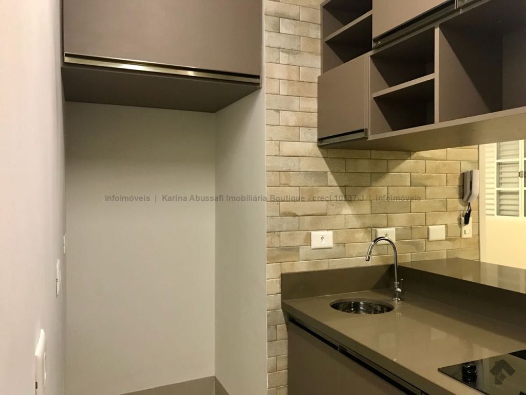 Térreo, totalmente reformado, com acabamento de primeira linha, sala com cozinha americana completa em armários, quarto independente com armários e banheiro. Condomínio com piscina, sauna e lavanderia coletiva.