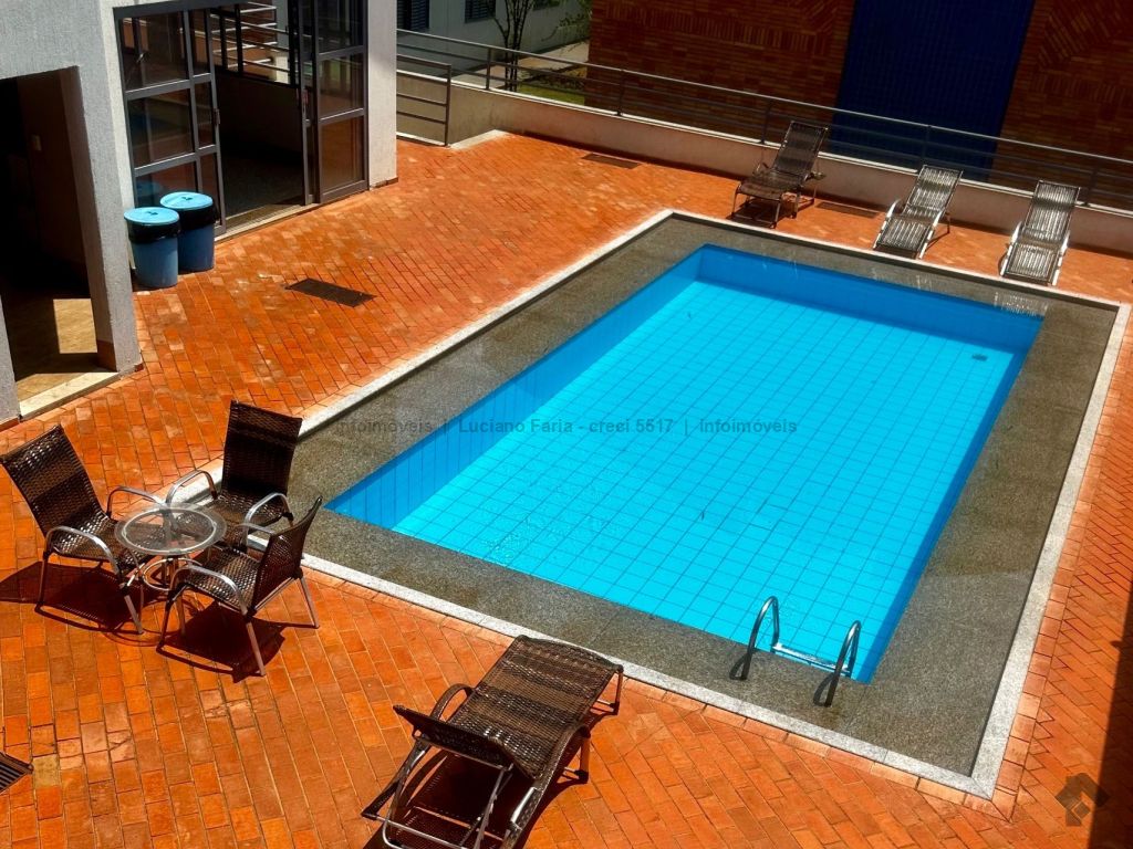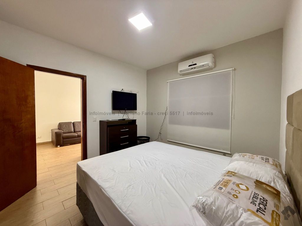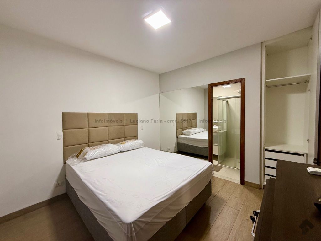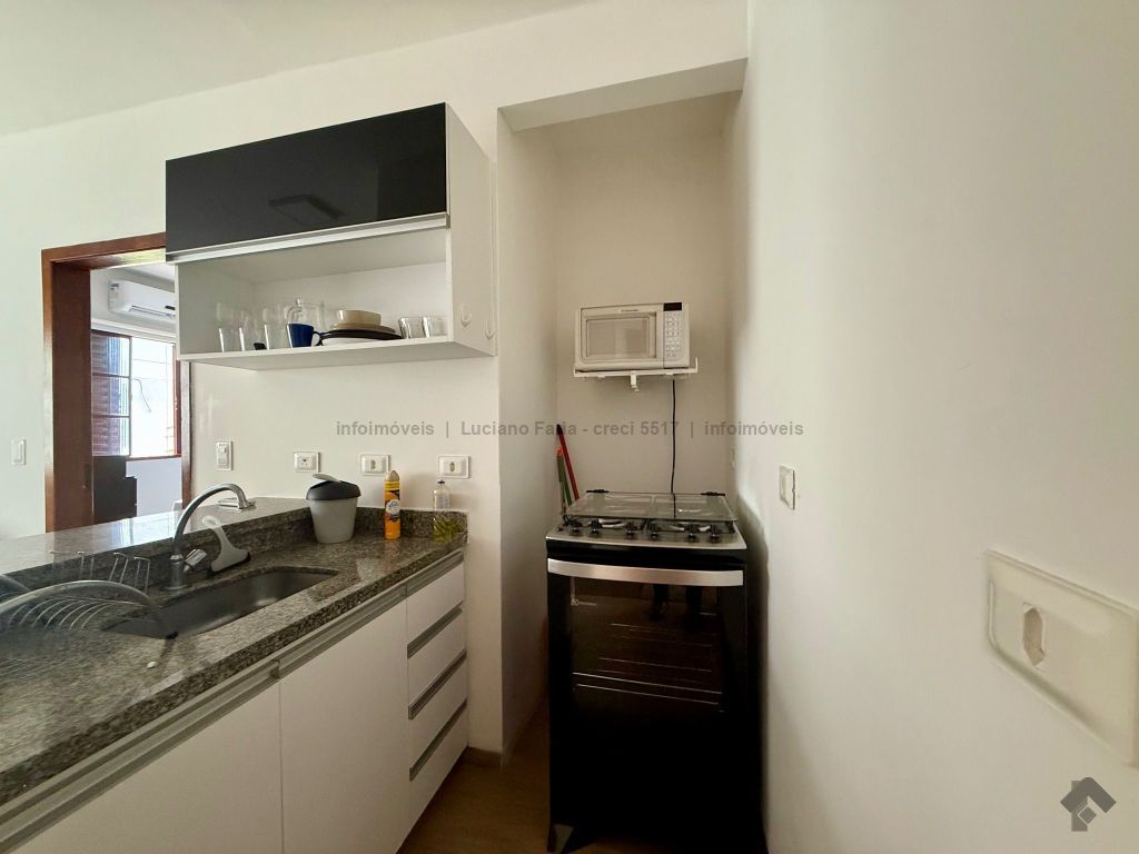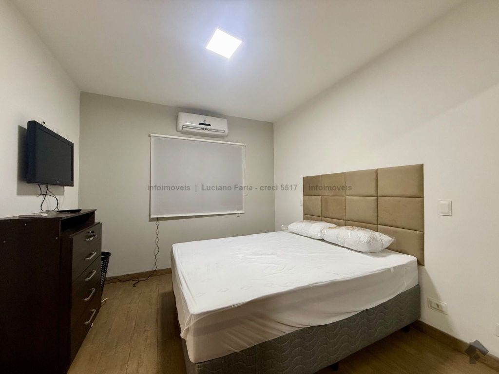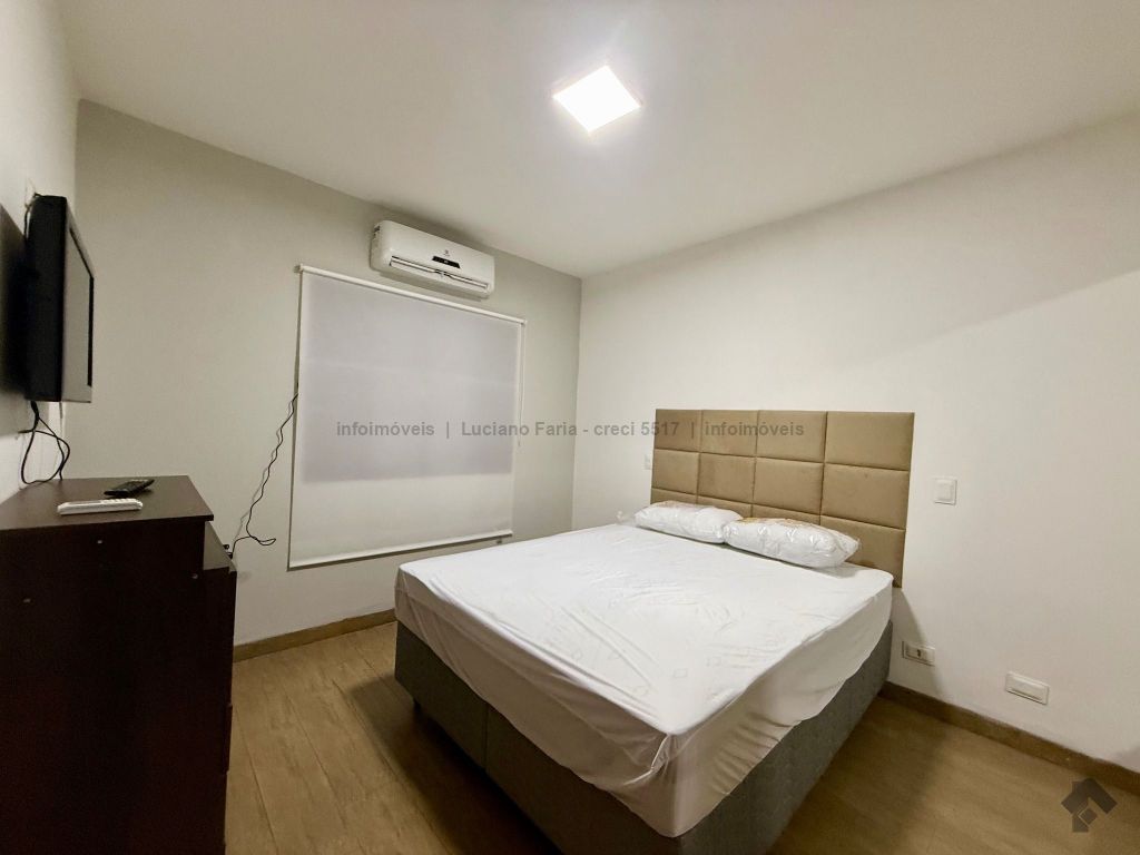 Imóvel mobiliado com móveis novos. Sala com ar-condicionado split e 2 sofás, cozinha americana com planejados, micro-ondas, fogão, geladeira e armário suspenso. Suíte com cama queen size nova, ar-condicionado split, cômoda e televisão, armário planejado embutido, banheiro com planejados, piso e revestimento em porcelanato. Piso laminado nos demais ambientes. Área de lazer com piscina, churrasqueira coberta e salão de festas. Vaga de garagem coberta. Áreas exclusivas para lavanderia. Recepção e portaria presencial 24 horas com circuito de câmeras internas e externas.