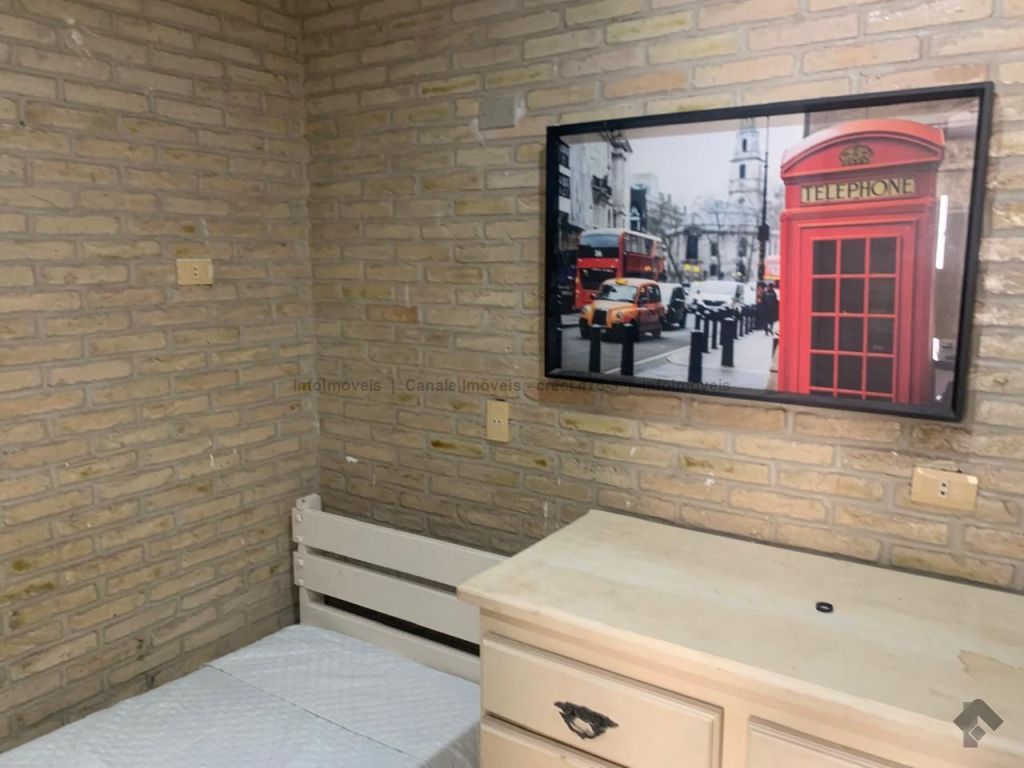Flat mobiliado contendo sala, cozinha, quarto, banheiro e vaga de garagem.
