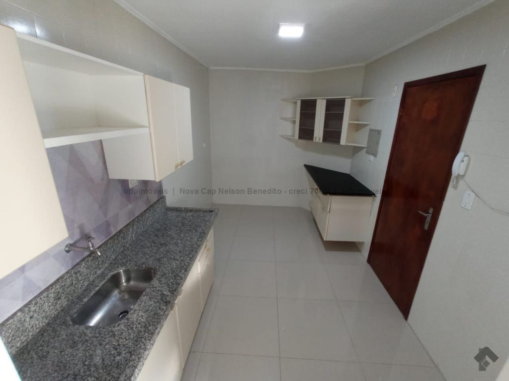Sala, uma suíte, dois quartos, banheiro social, cozinha com armários e área de serviço com banheiro, uma vaga de garagem.