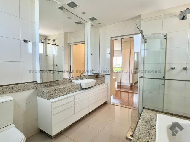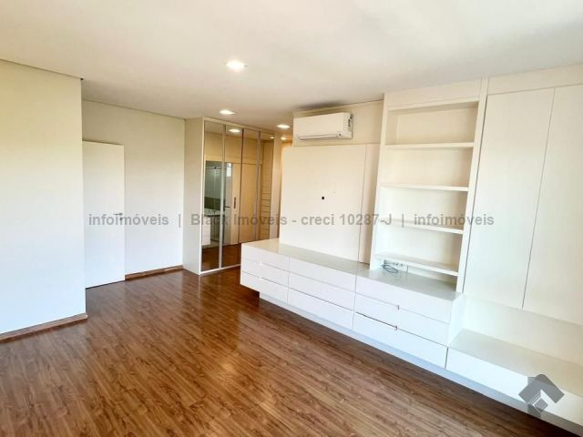 Apartamento com sala para 3 ambientes com split, lavabo, varanda com acesso ao gourmet, espaço gourmet com split, cozinha, lavanderia, quarto e banheiro de serviço. 1 suíte com split, 1 suíte com armário e split e suíte master com closet, banheiro e split. Roupeiro no corredor dos quartos. Hall individual, entrada social e de serviço e área técnica.