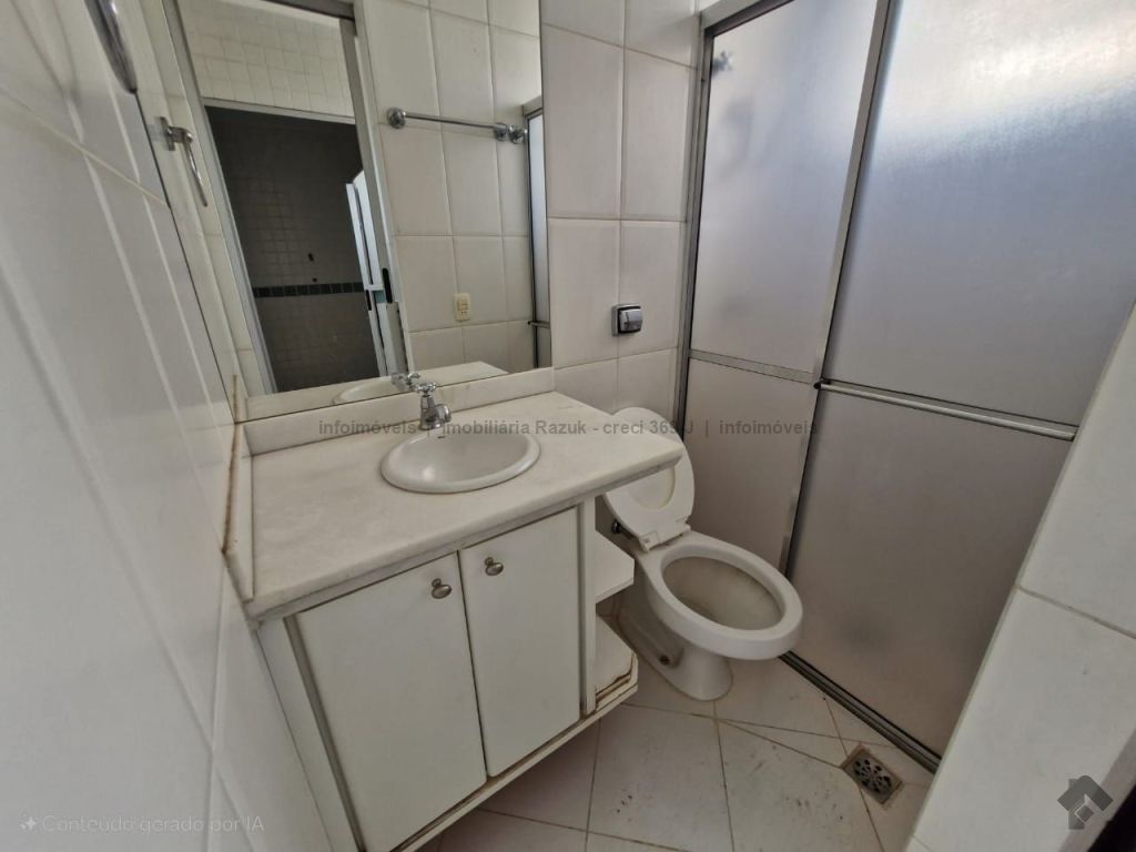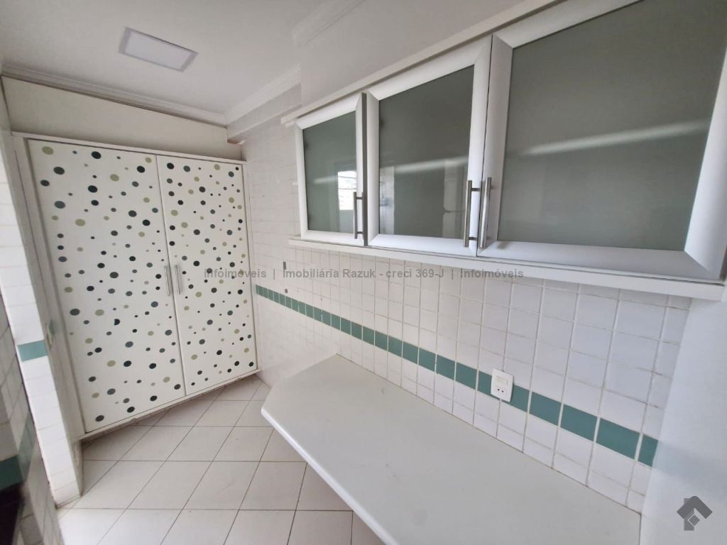 Sala para 2 ambientes com mesa com 4 cadeiras. 2 quartos sendo 1 com armário. WCs com armário embaixo da pia e box blindex. Cozinha planejada com fogão. Lavanderia. WC de serviço com armário embaixo da pia e box acrílico. Condomínio com salão de festas com churrasqueira.
