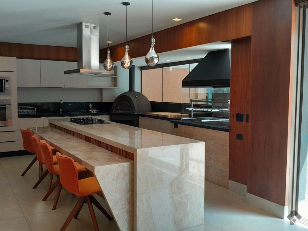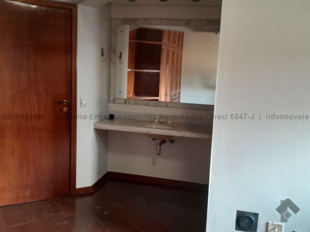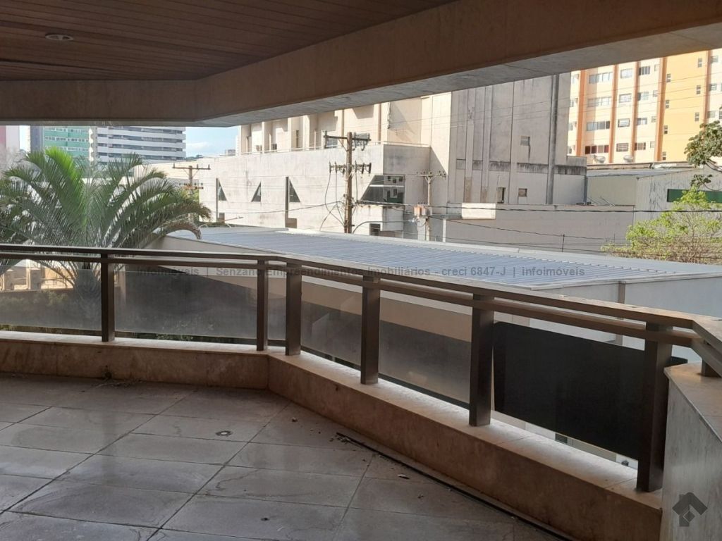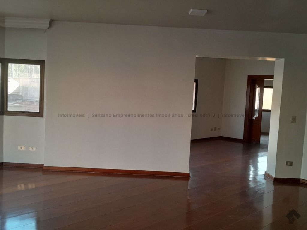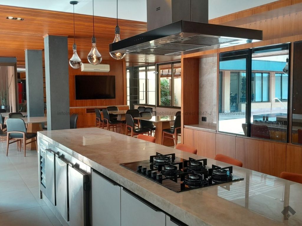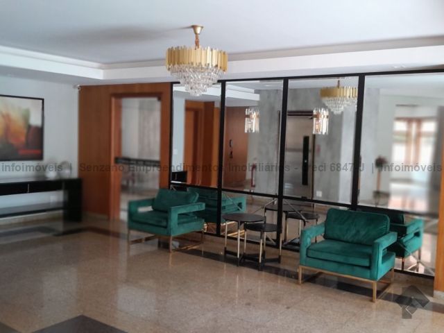 Apartamento amplo com três suítes, sendo uma suíte master, sala para três ambientes, sacada, sala de TV, sala gourmet, cozinha planejada, duas despensas, área de serviço ampla, dois quartos para funcionários e um banheiro de serviço.