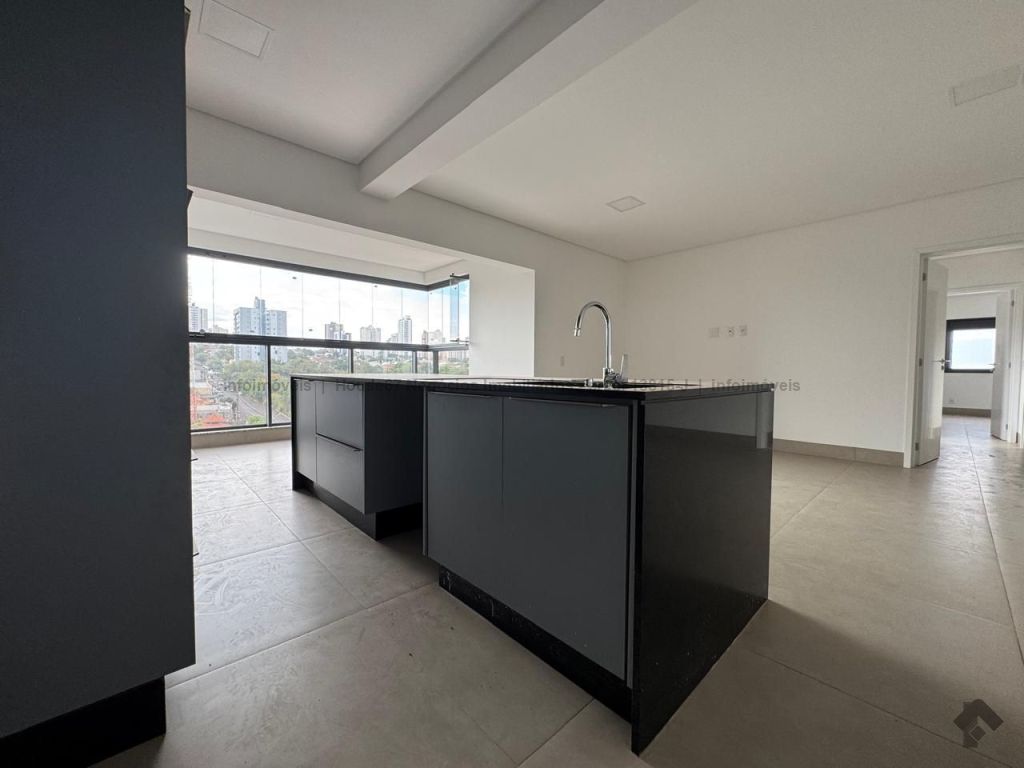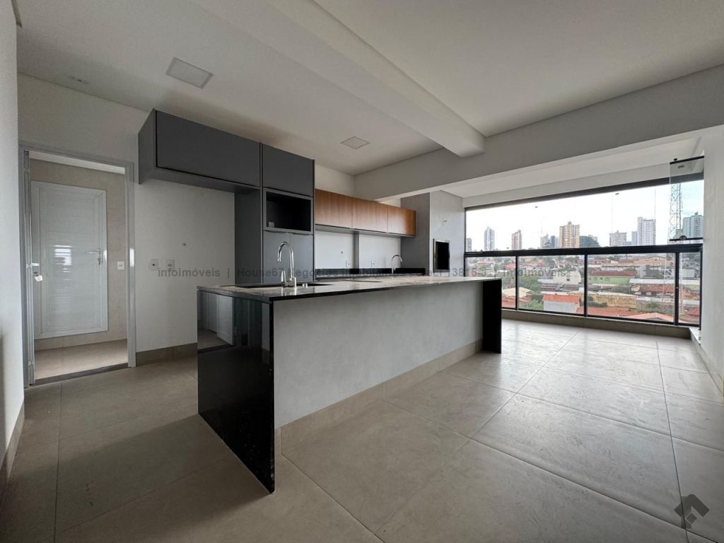 Edifício Porto Madero, três suítes, sala ampla para dois ambientes, cozinha planejada toda integrada, sacada com churrasqueira, lavabo, área de serviço e WC de serviço, área privativa de 129 m².