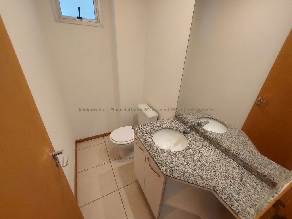 1 lavabo, 1 WC social, 1 área de serviço, 1 quarto, 1 cozinha com armário embutido, 1 suíte com armário embutido, 1 quarto com armário embutido, 1 sacada com churrasqueira, 2 garagens, 1 sala de estar para 2 ambientes.