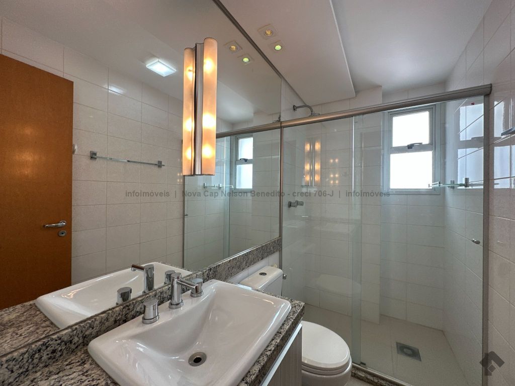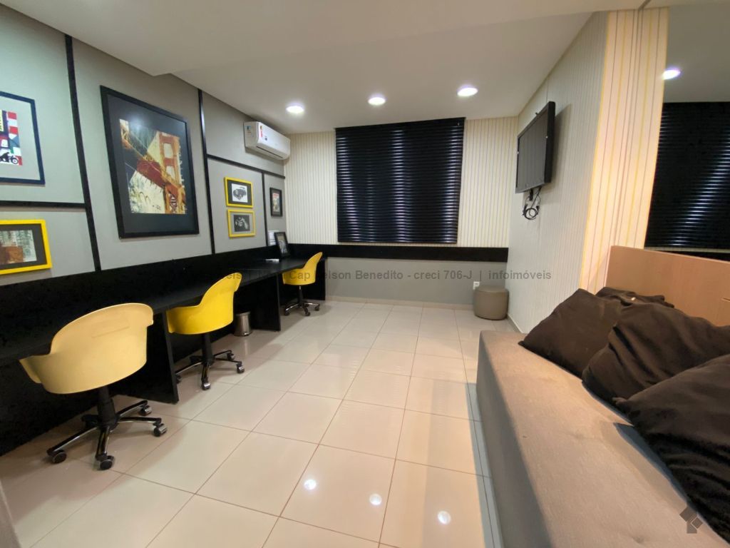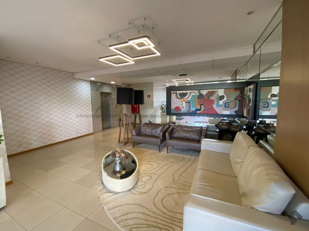 Apartamento no 6º andar, com sala para dois ambientes, varanda com churrasqueira, cozinha, área de serviço, dois quartos, banheiro social, uma suíte e duas vagas de garagem.