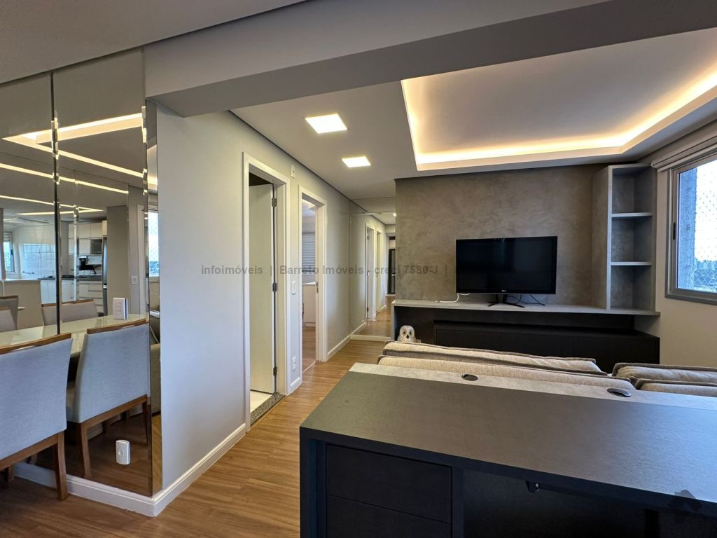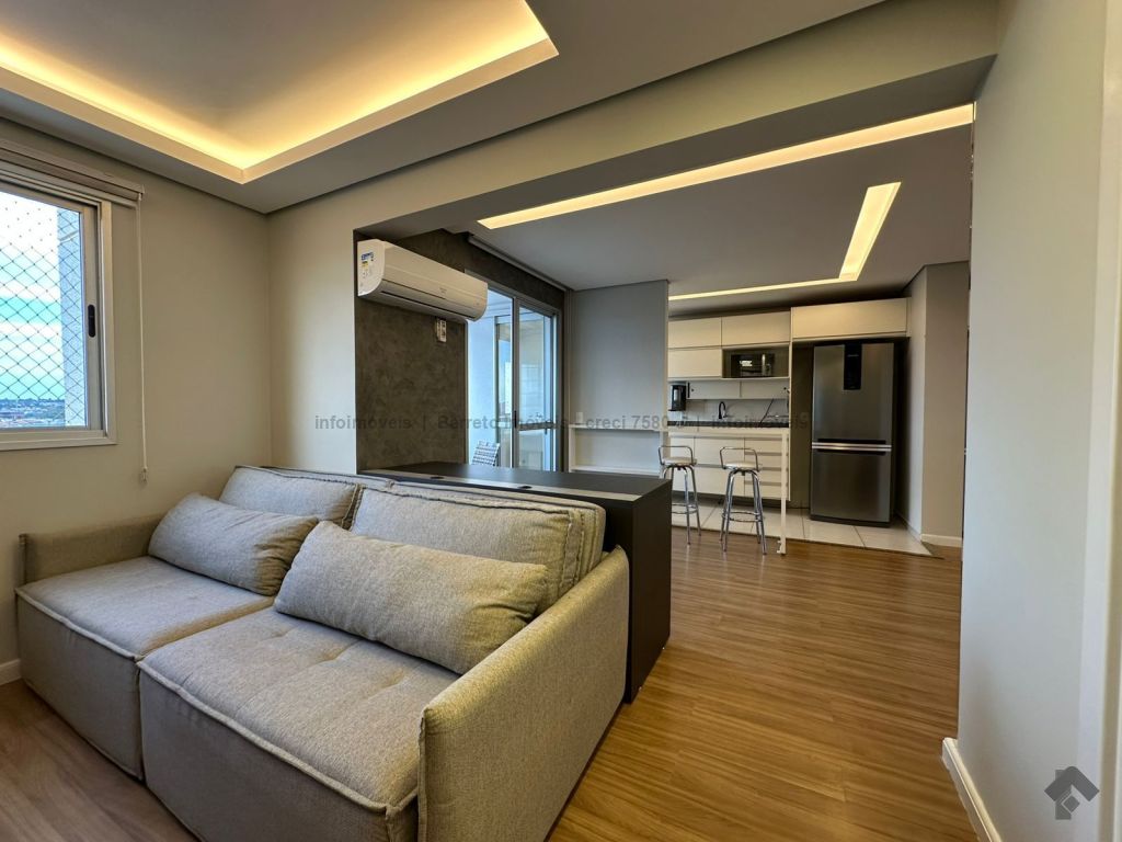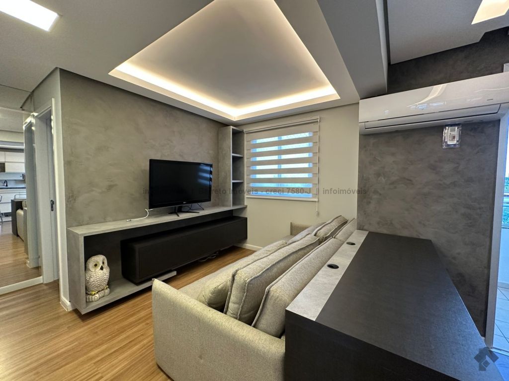 Apartamento mobiliado que combina conforto e modernidade. Ampla sala de dois ambientes climatizada. Cozinha planejada, ideal para recepcionar. Lavanderia bem posicionada, oferecendo praticidade no dia a dia. Sacada com churrasqueira, perfeita para momentos de lazer. Suíte e quarto com armários embutidos, garantindo privacidade e organização. Ambiente acolhedor e contemporâneo, ideal para viver momentos especiais.