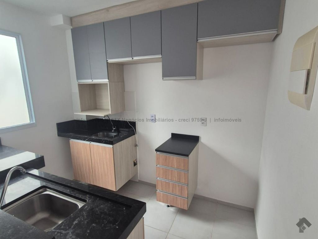 Cozinha planejada, banheiro com cuba de cerâmica e pedra em granito, sala de estar/jantar, piso laminado, WC social, 1 vaga de garagem, 2 dormitórios.