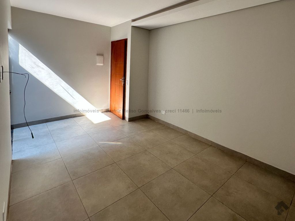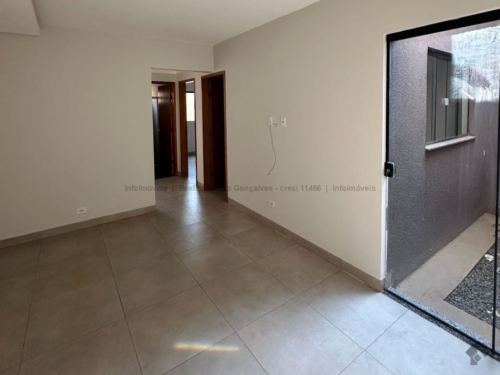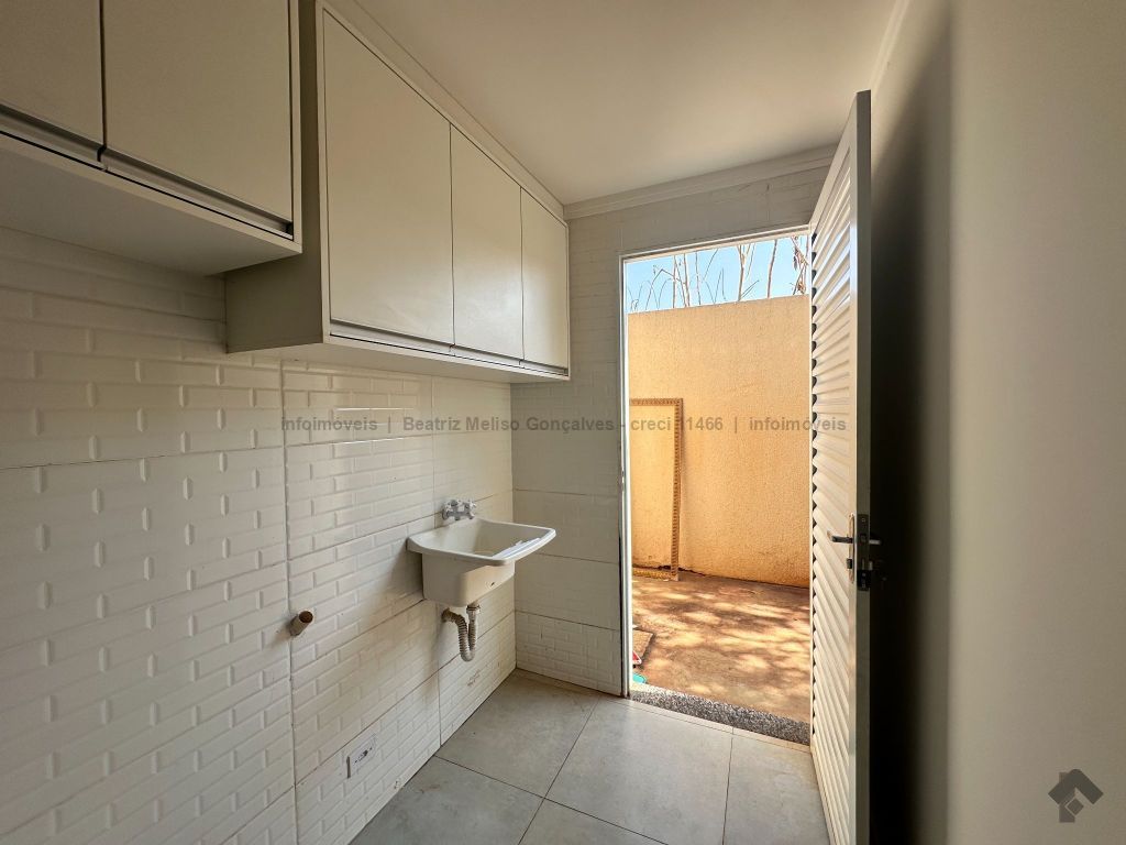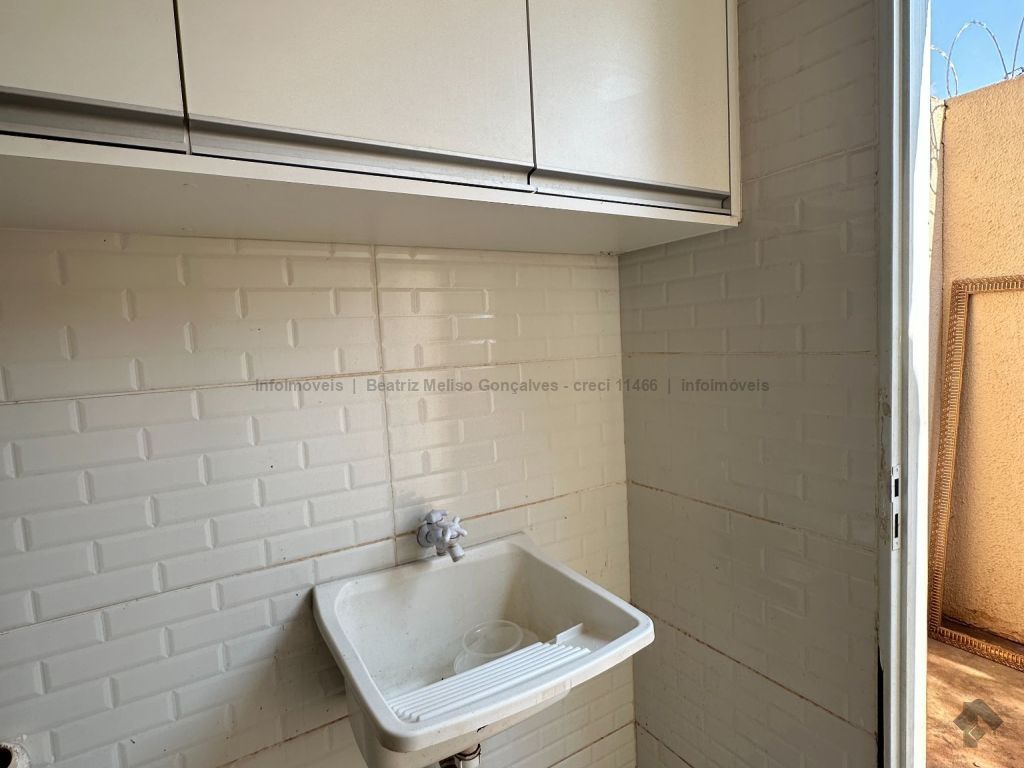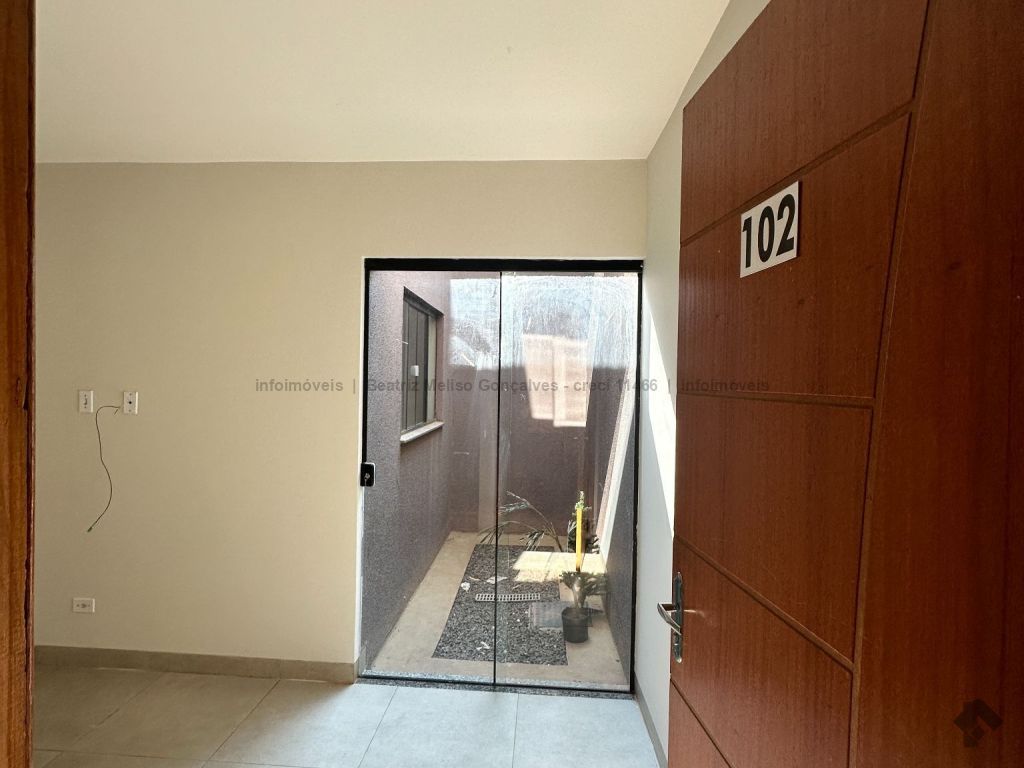São dois quartos, uma sala dois ambientes com jardim externo, cozinha, lavanderia e quintal. Há garagem com portão de elevação e sistema de interfone.
