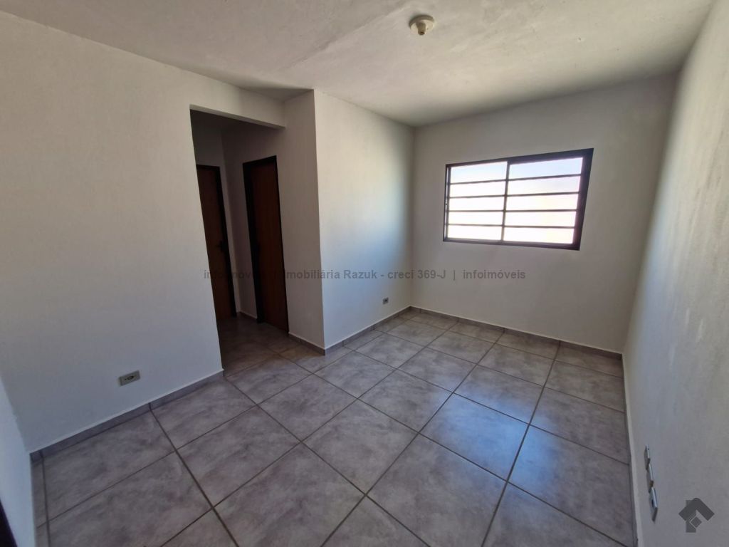 Sala, cozinha com pia, 2 quartos, 1 banheiro, área de serviço, 1 vaga de garagem.