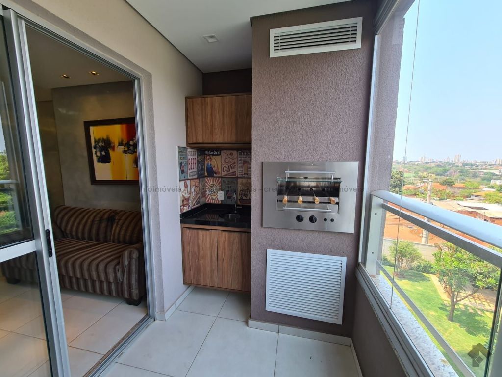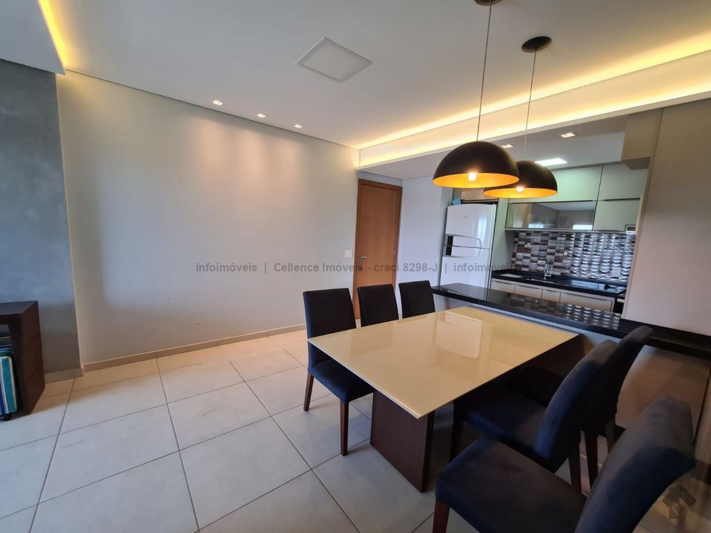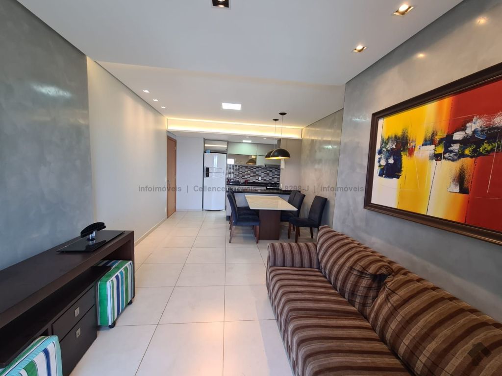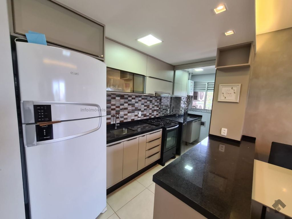 Apartamento impecável, mobiliado com armários e ar condicionado em todos os quartos, sendo um apartamento com dois quartos, cozinha planejada com geladeira e fogão, área de serviço, sala de jantar com mesa e cinco cadeiras estofadas, sala de estar com sofá de dois lugares, rack com duas banquetas embutidas, sacada com churrasqueira a gás e três garagens cobertas, portaria 24h.