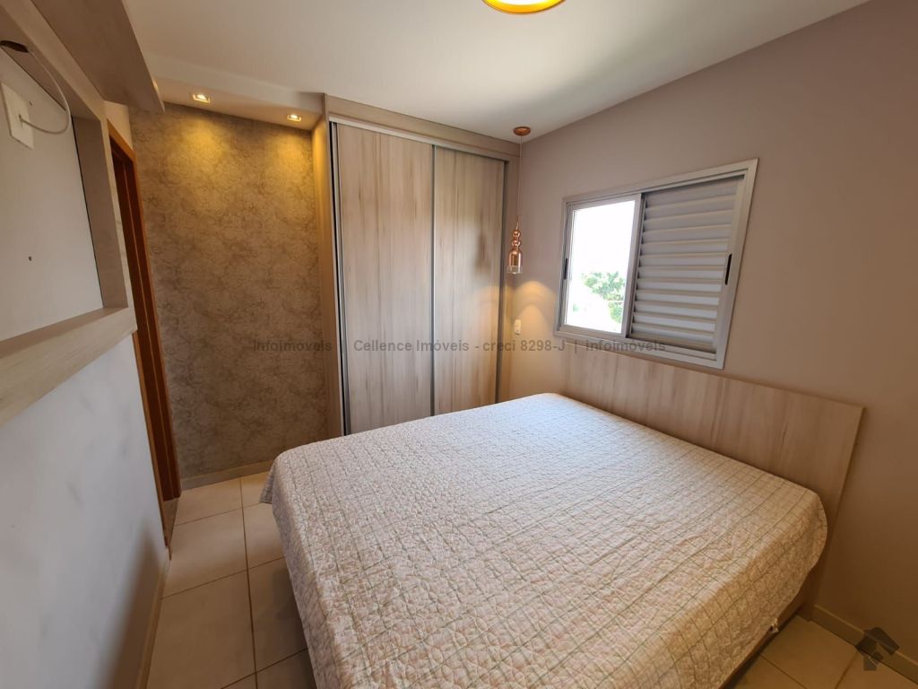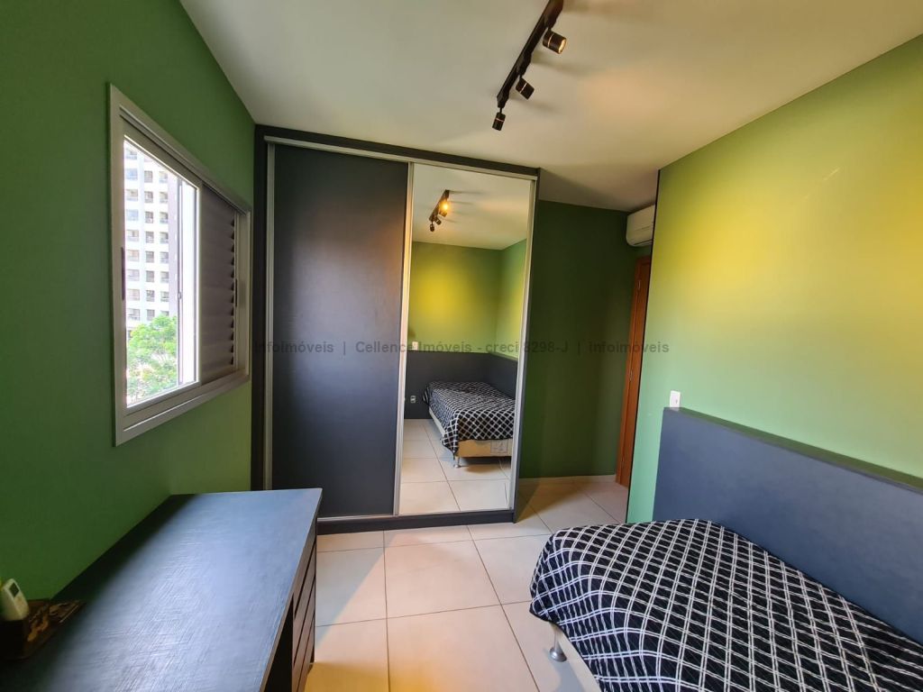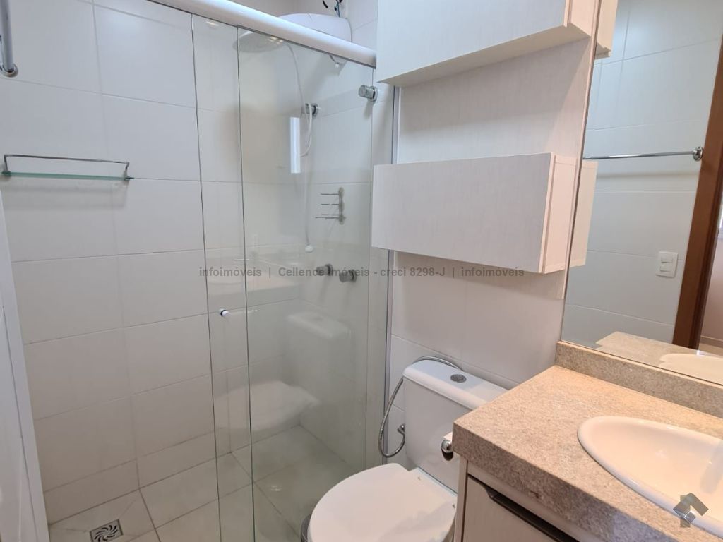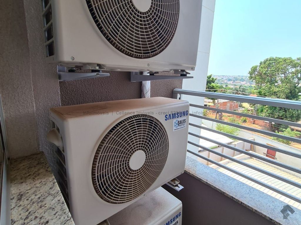 Apartamento impecável, mobiliado com armários e ar condicionado em todos os quartos, sendo um apartamento com dois quartos, cozinha planejada com geladeira e fogão, área de serviço, sala de jantar com mesa e cinco cadeiras estofadas, sala de estar com sofá de dois lugares, rack com duas banquetas embutidas, sacada com churrasqueira a gás e três garagens cobertas, portaria 24h.