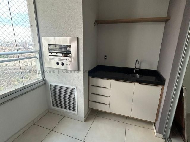 2 quartos sendo 1 suíte com guarda-roupas e ar-condicionado, cozinha e lavanderia com móveis planejados, fogão cooktop, banheiro social com móveis planejados e box, sacada gourmet com churrasqueira e fechada de blindex, 1 vaga de garagem.