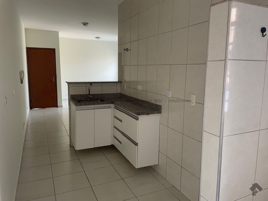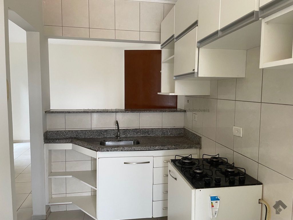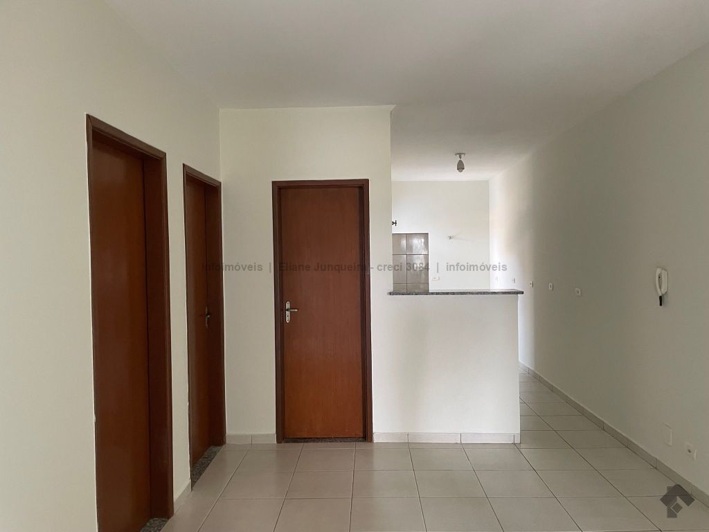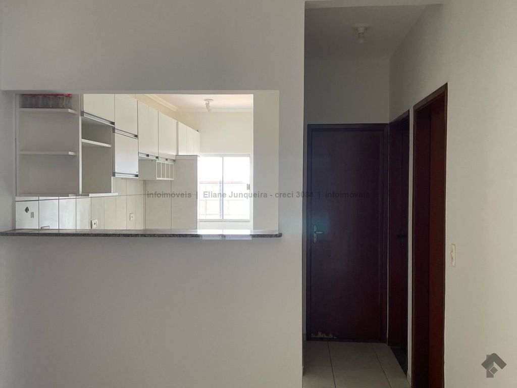 Sala para 2 ambientes, cozinha americana, sacada, 2 quartos e um banheiro social.