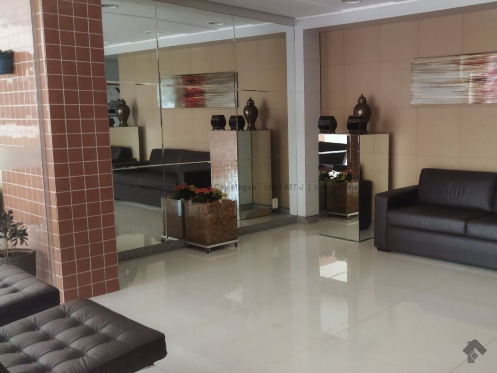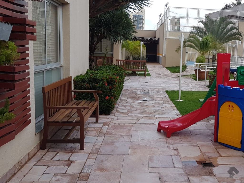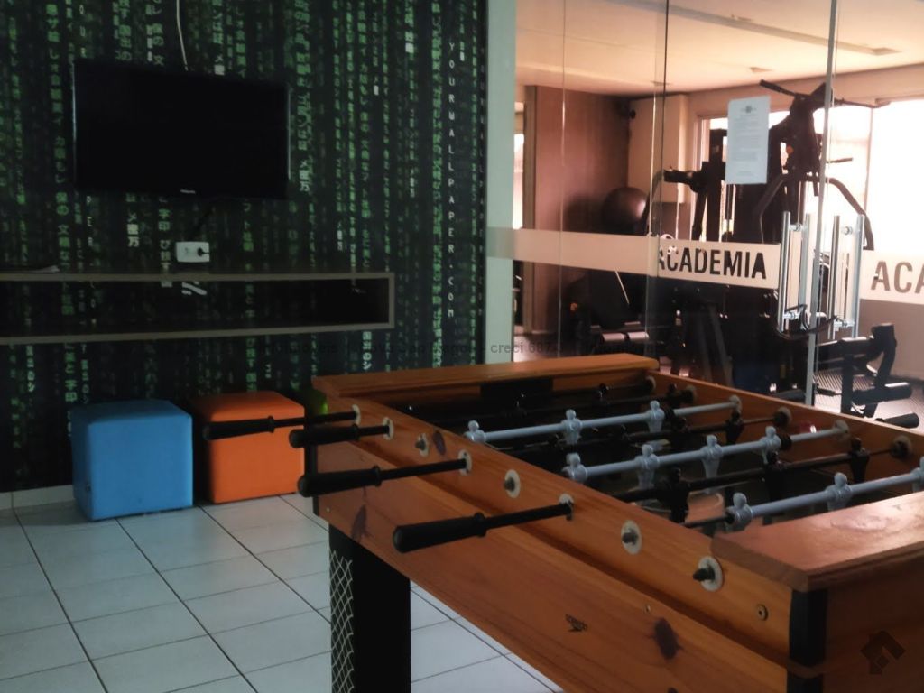 Sala para 2 ambientes, sacada com churrasqueira, lavabo, cozinha com armários, área de serviço, 2 quartos sendo um com armário, suíte com armário, WC social. Condomínio com portaria 24 horas, 2 vagas de garagem, academia, salão de festas, piscina adulto e infantil, quadra poliesportiva, playground, sala de jogos.
