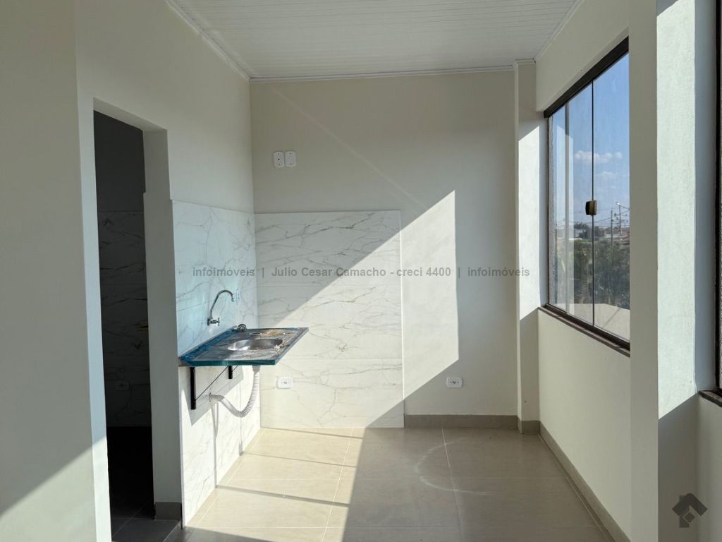 Apartamento com 2 quartos grandes, banheiro, lavanderia, sala, cozinha e garagem.