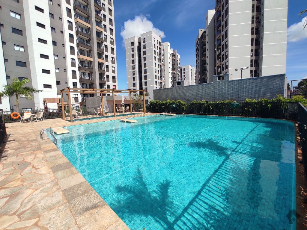 Apartamento em uma das melhores localizações do condomínio, sendo bloco 2, possuindo sala com sacada, cozinha planejada, lavanderia, 1 quarto e 1 suíte, ambos com ar condicionado. O Aquarela Club é completo, possuindo 1 vaga de garagem, academia, piscinas, playground, quadra de areia e pavimentada, espaço gourmet climatizado, espaço pet e outros atrativos, portaria 24h e muita segurança.