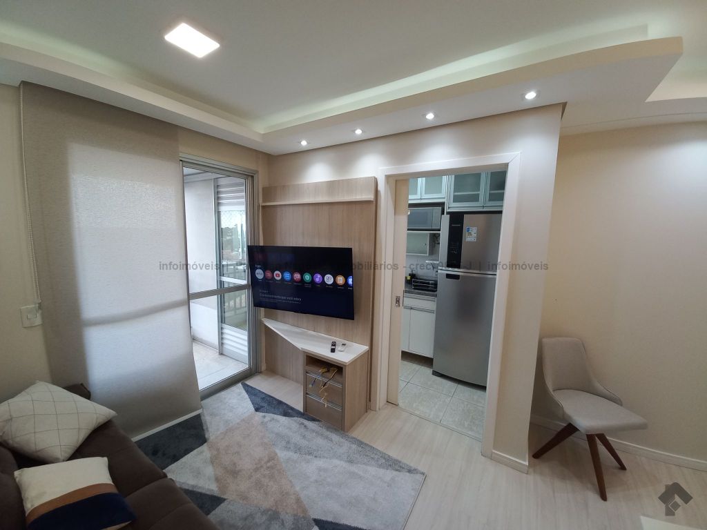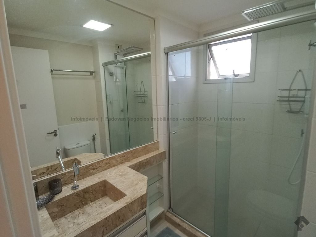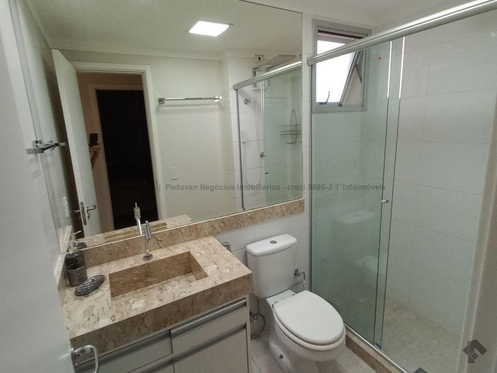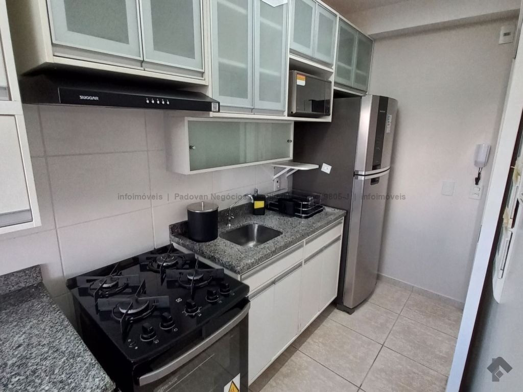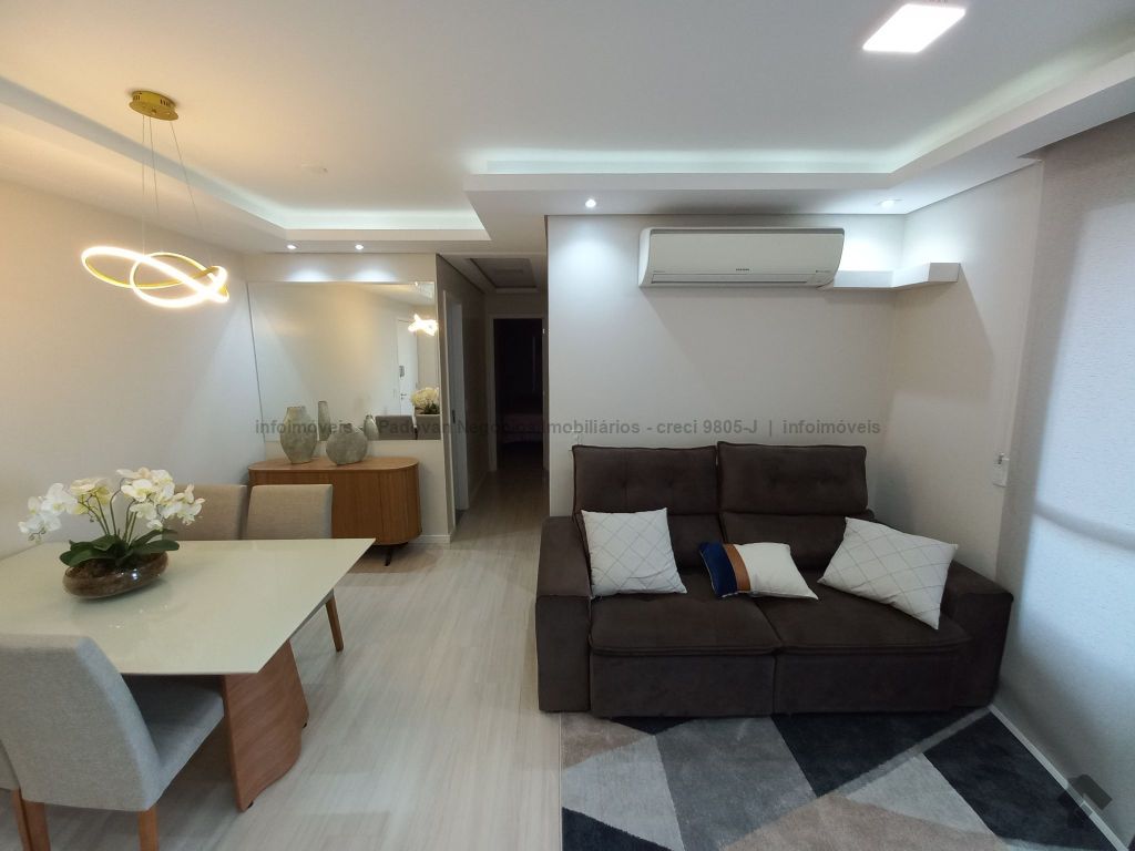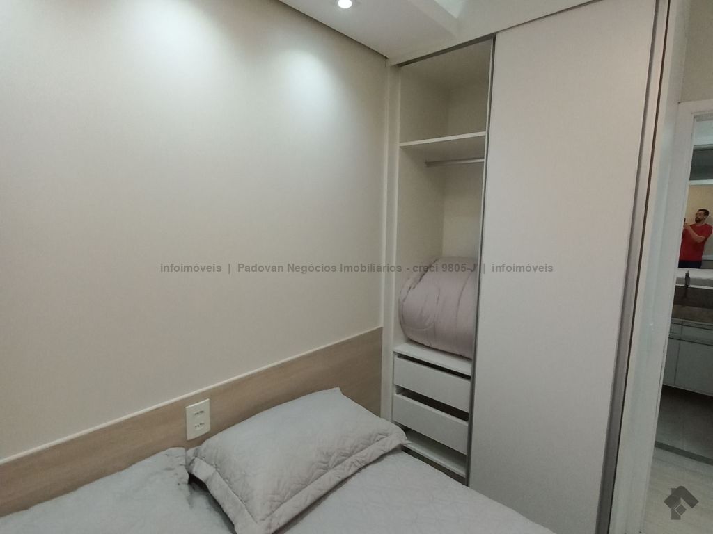 Imóvel possui sala de estar com sofá retrátil, carpete, persiana, TV 50" e ar-condicionado, sala de jantar com mesa de vidro, cadeiras e armário vintage, cozinha com armários planejados, geladeira, forno micro-ondas, fogão 4 bocas, coifa, área de serviço com lavadora lava e seca 11 kg, área gourmet com pia, armário planejado e churrasqueira, banheiro social com armário planejado, box de vidro temperado, 1 suíte com cama box, armários planejados, persiana, painel com TV 48" e ar-condicionado, banheiro da suíte com armários planejados, box de vidro temperado, 1 quarto com cama de casal box e armário planejado, e 1 quarto com 2 camas box solteiros, persiana e ar-condicionado. O condomínio oferece academia.