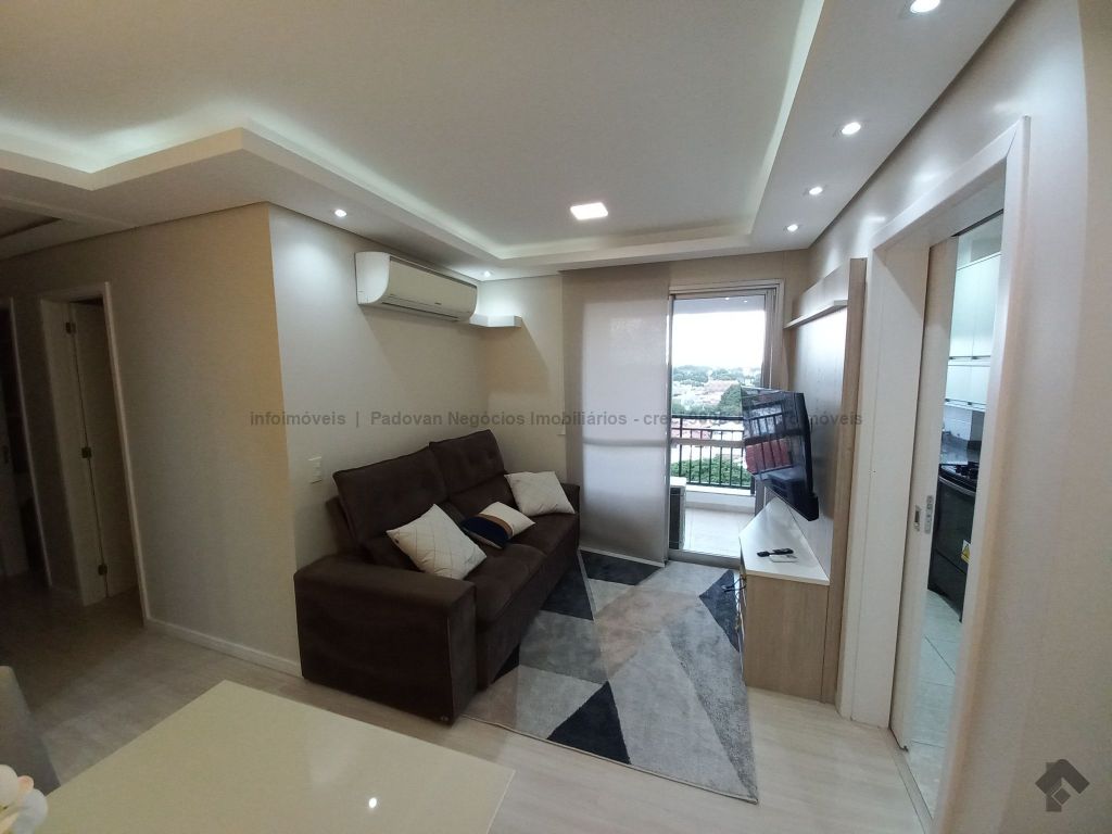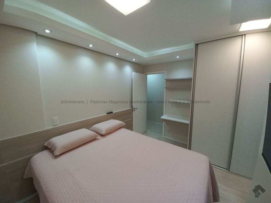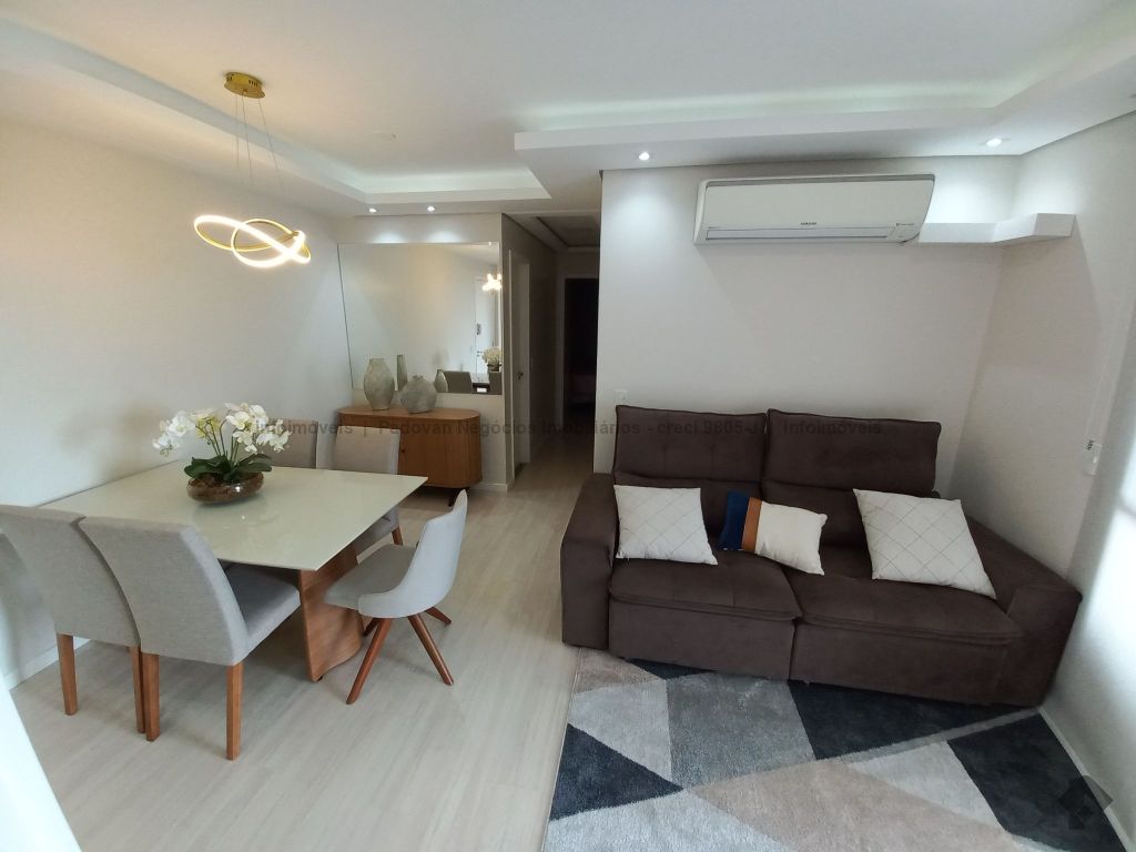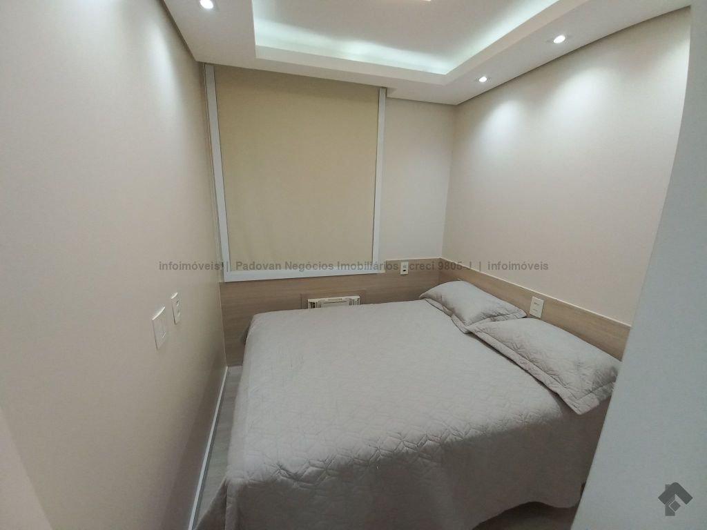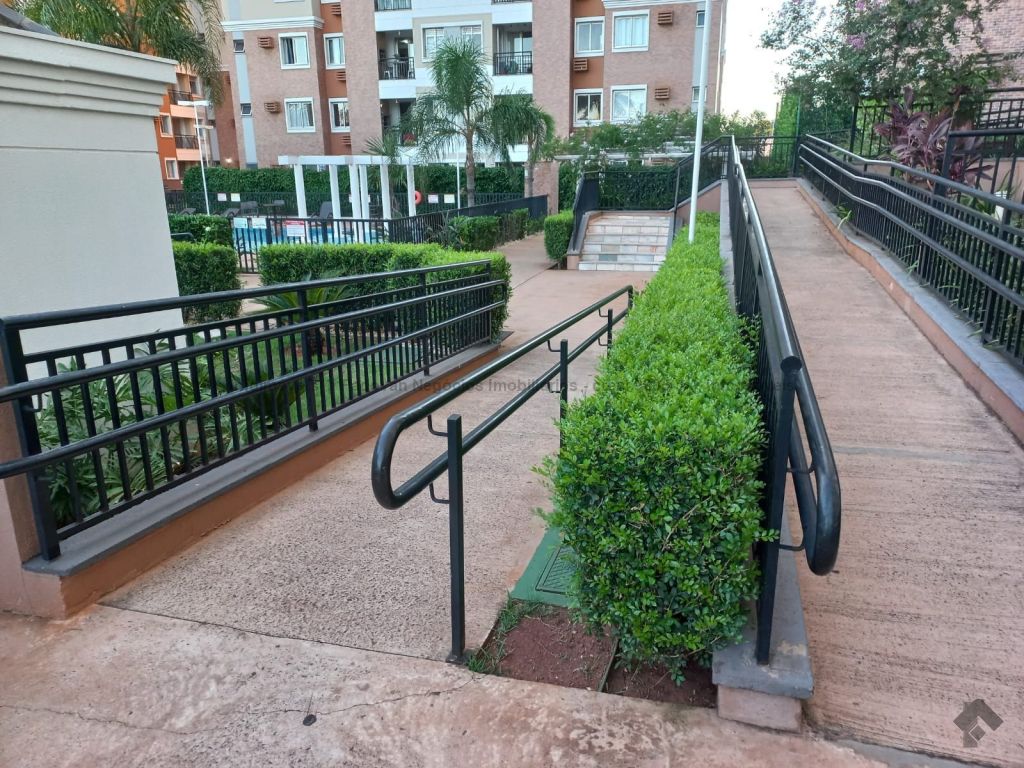 Imóvel possui sala de estar com sofá retrátil, carpete, persiana, TV 50" e ar-condicionado, sala de jantar com mesa de vidro, cadeiras e armário vintage, cozinha com armários planejados, geladeira, forno micro-ondas, fogão 4 bocas, coifa, área de serviço com lavadora lava e seca 11 kg, área gourmet com pia, armário planejado e churrasqueira, banheiro social com armário planejado, box de vidro temperado, 1 suíte com cama box, armários planejados, persiana, painel com TV 48" e ar-condicionado, banheiro da suíte com armários planejados, box de vidro temperado, 1 quarto com cama de casal box e armário planejado, e 1 quarto com 2 camas box solteiros, persiana e ar-condicionado. O condomínio oferece academia.