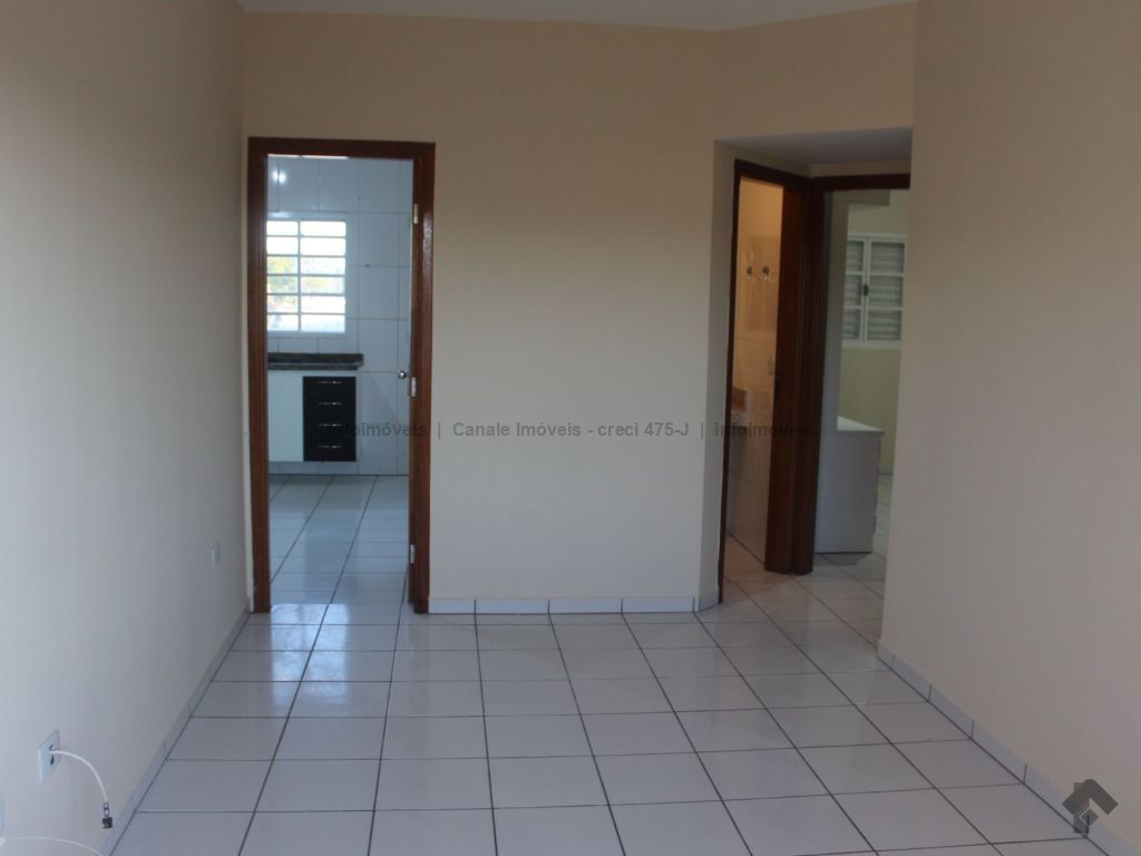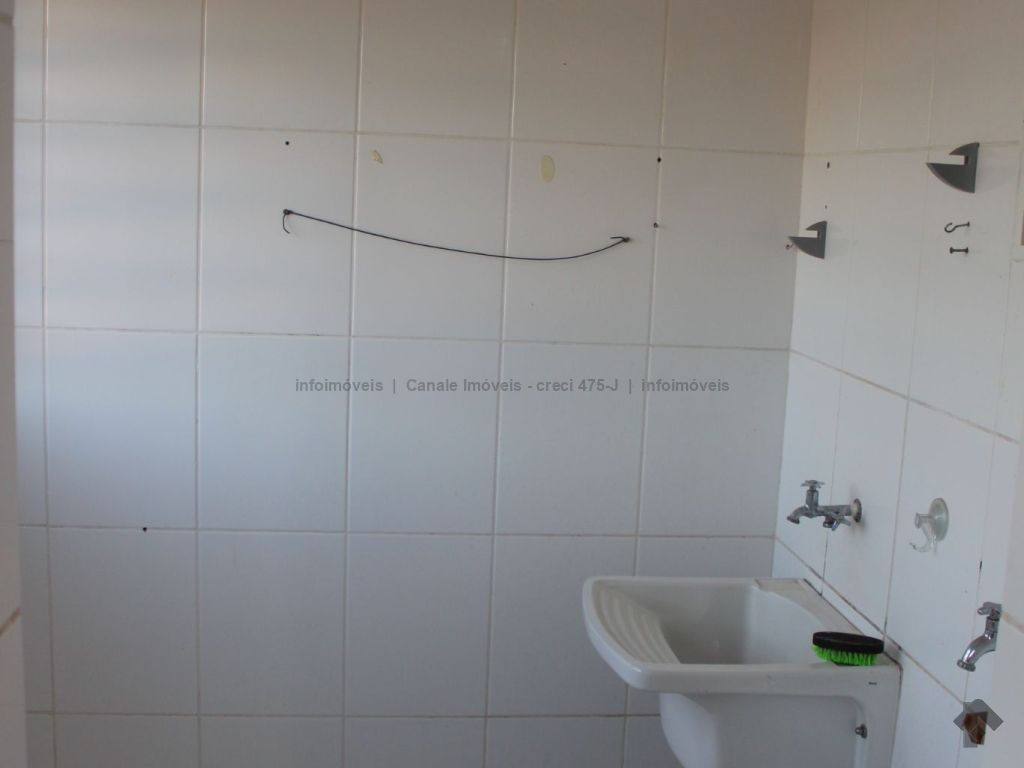 Apartamento com sala com sacada, cozinha com armário, lavanderia, banheiro social, 2 quartos com armários e 1 vaga de garagem.