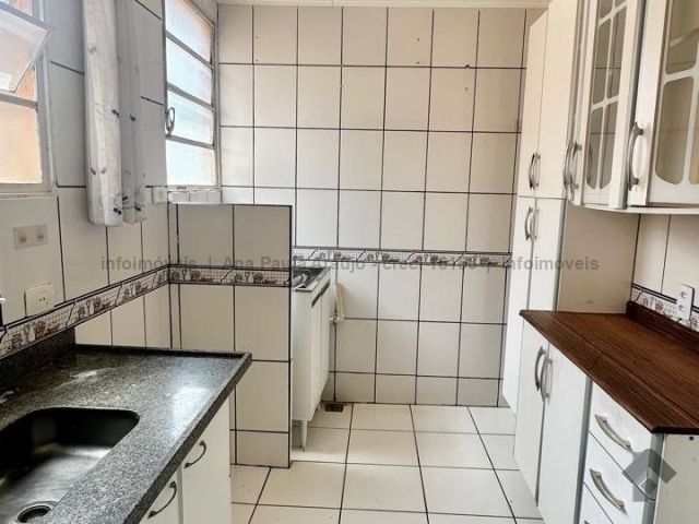 Sala, 2 quartos sendo um com armário, cozinha com armário, WC social com armário, lavanderia e 1 vaga de garagem. Apartamento no 4º andar.