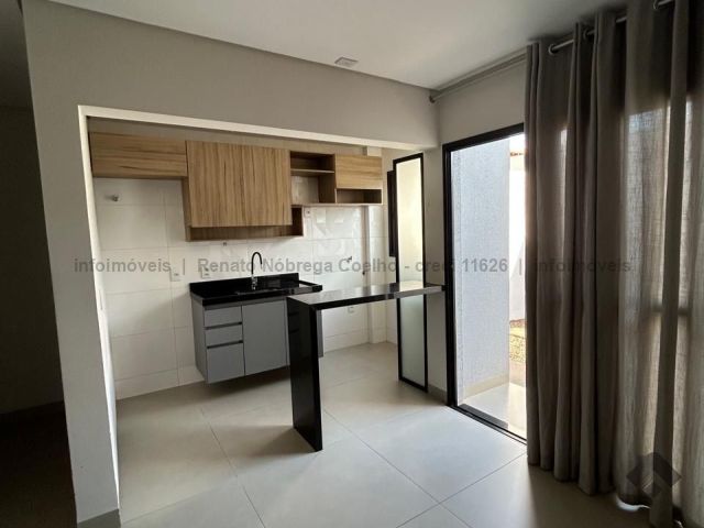 Apartamento térreo com espaço privativo exclusivo, 01 suíte, 01 quarto, 01 banheiro social, sala de estar com cozinha americana, 01 vaga de garagem coberta.