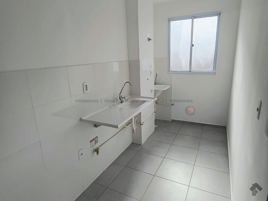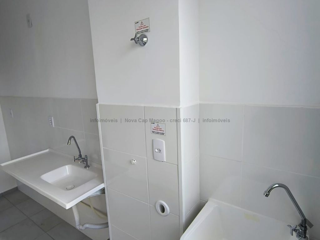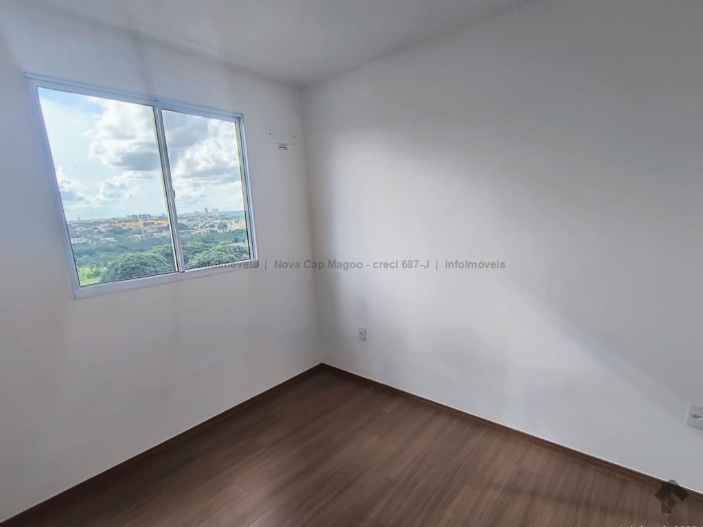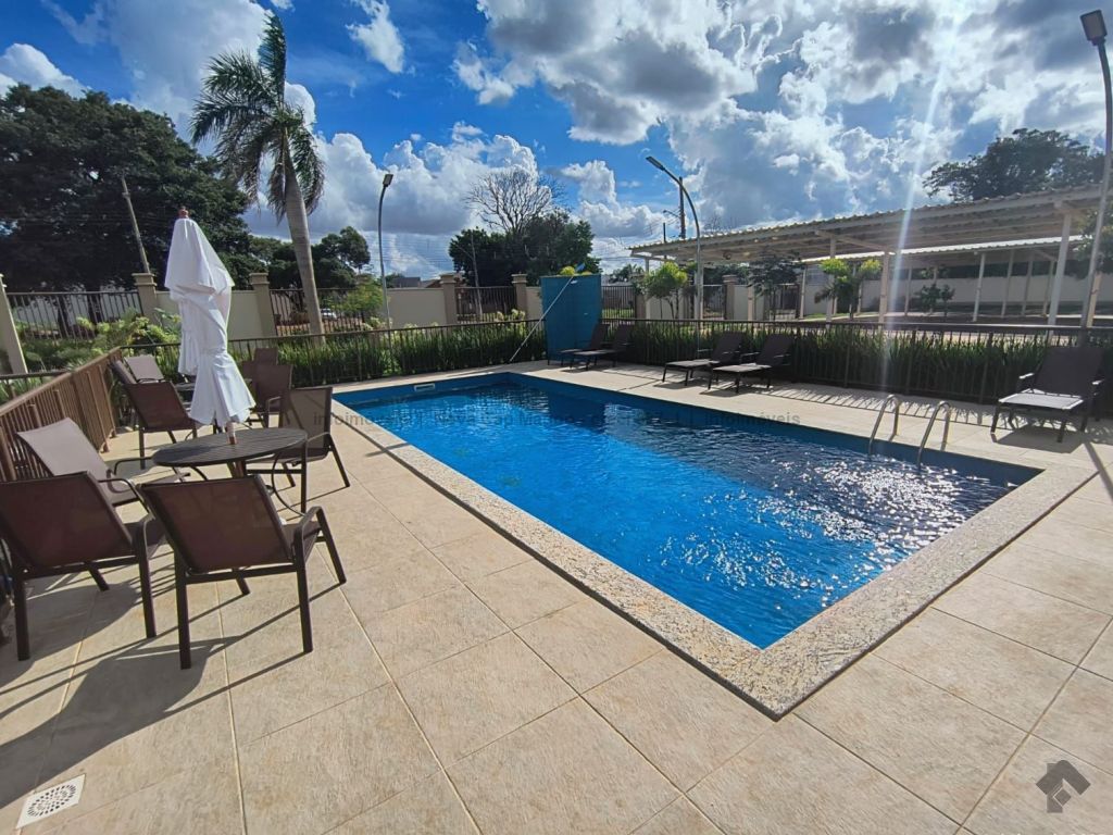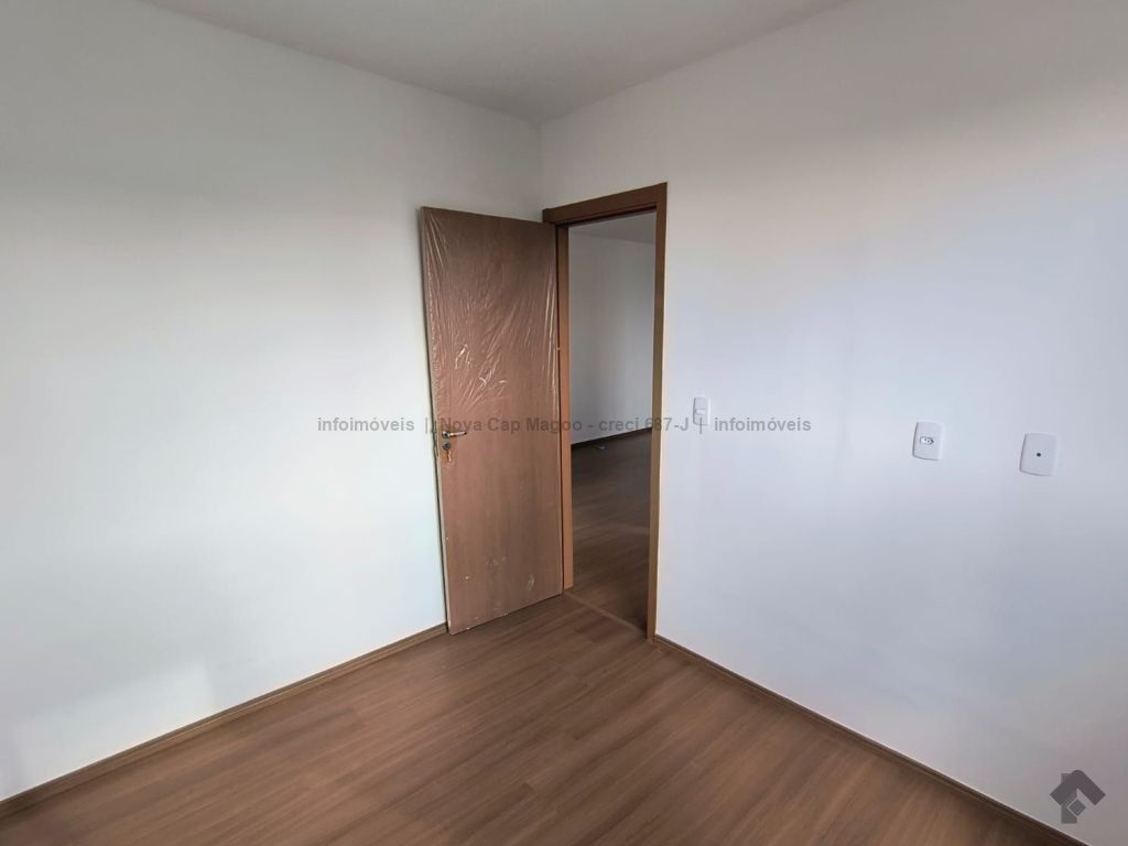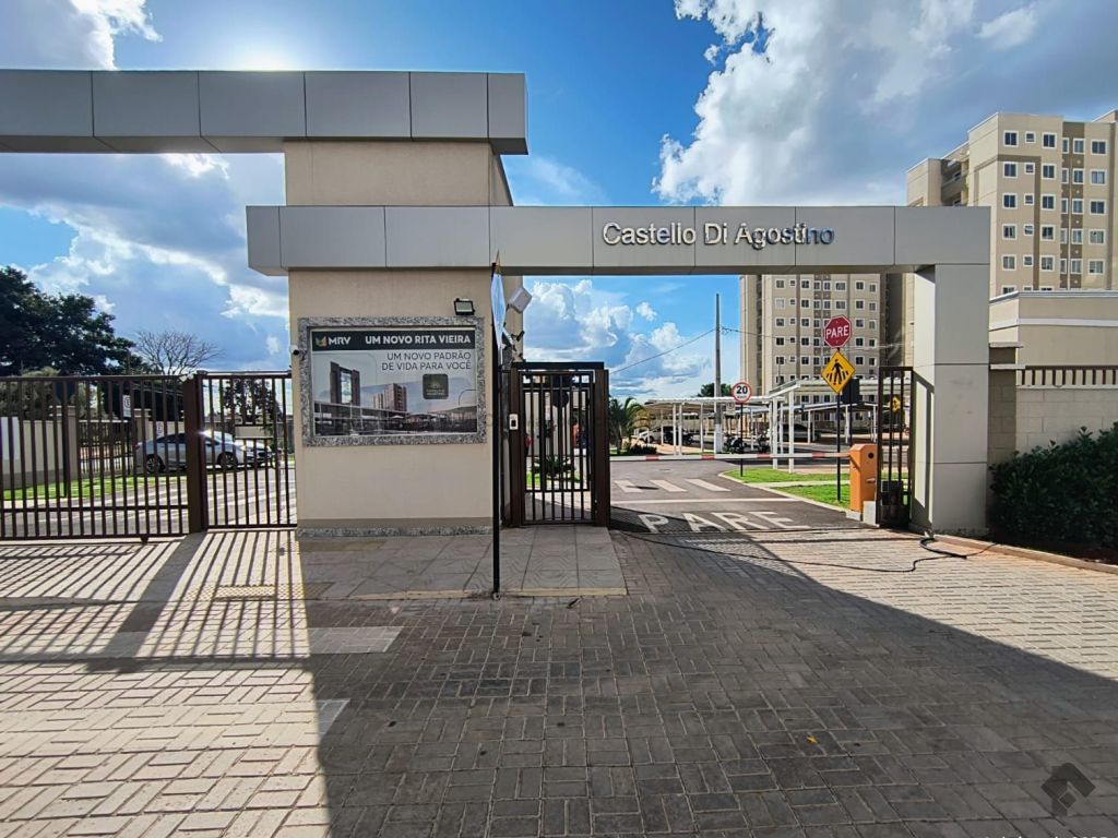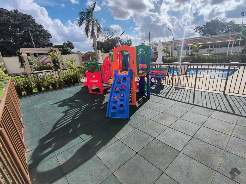 Garagem coberta, sacada, sala, cozinha, área de serviço, WC social, 2 quartos. Condomínio com área de churrasqueira, piscina e playground.