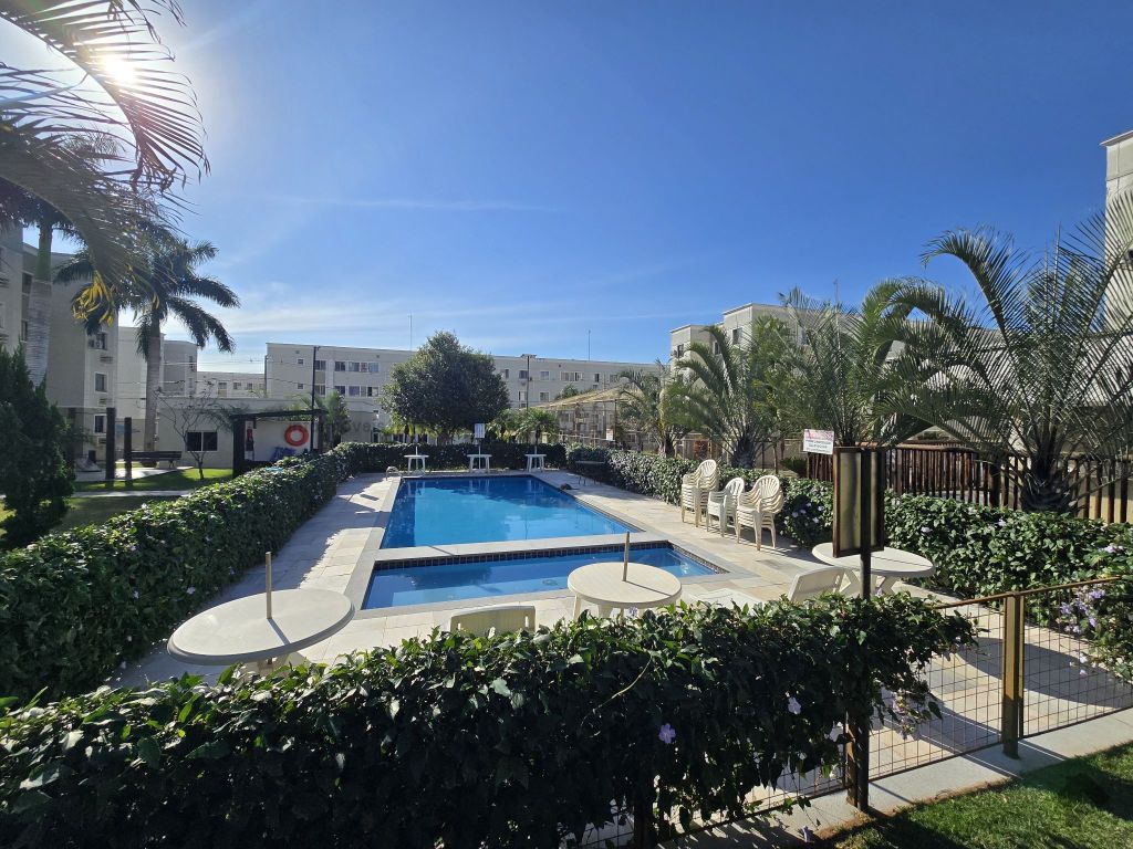 Contendo 02 quartos, sala de jantar, sala de estar, cozinha planejada, WC social, área de serviço e 1 vaga de garagem. O condomínio conta com área de lazer completa, piscinas, quiosques, conveniência autônoma, portaria 24h, quadra poliesportiva e lavanderia.
