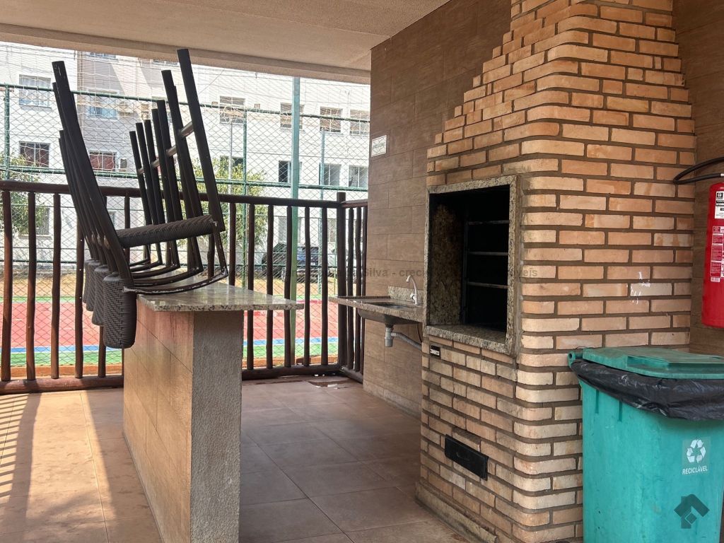 • Água • Asfalto • Calçada • Rede elétrica • Sala de jantar • Sala de TV • 1 Quarto com a/e • 1 Quarto • 1 Wc social • 1 Vaga de garagem • Interfone • Piscina • Play-ground • Portaria • Quiosque