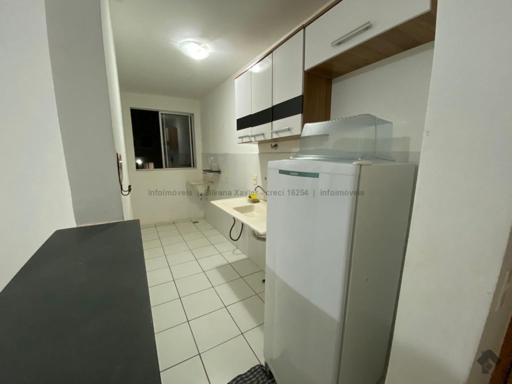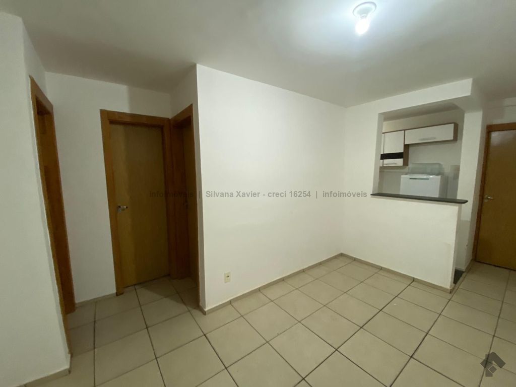 Apartamento para locação no condomínio Castelo de Mônaco, bairro Pioneiros, com 02 quartos, banheiro social e sala e cozinha integradas. Possui armário na cozinha, geladeira e ar condicionado em um dos quartos. Primeiro andar.