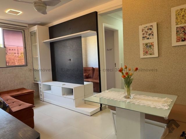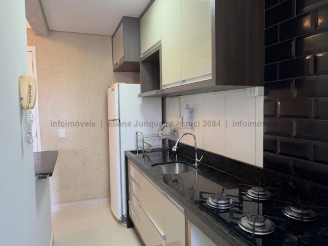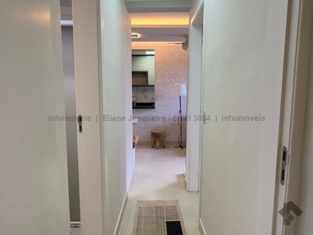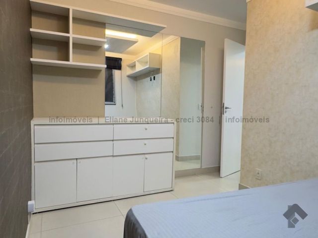 Apartamento mobiliado e pronto para morar. Com 2 quartos, sendo 1 transformado em closet com armários planejados, sala com sofá, mesa de jantar estilo alemão e painel para TV, cozinha americana equipada com fogão, coifa, micro-ondas e máquina de lavar. Quarto principal com cama, painel de TV e ar-condicionado. Banheiro social completo, condomínio com piscina e área de lazer.
