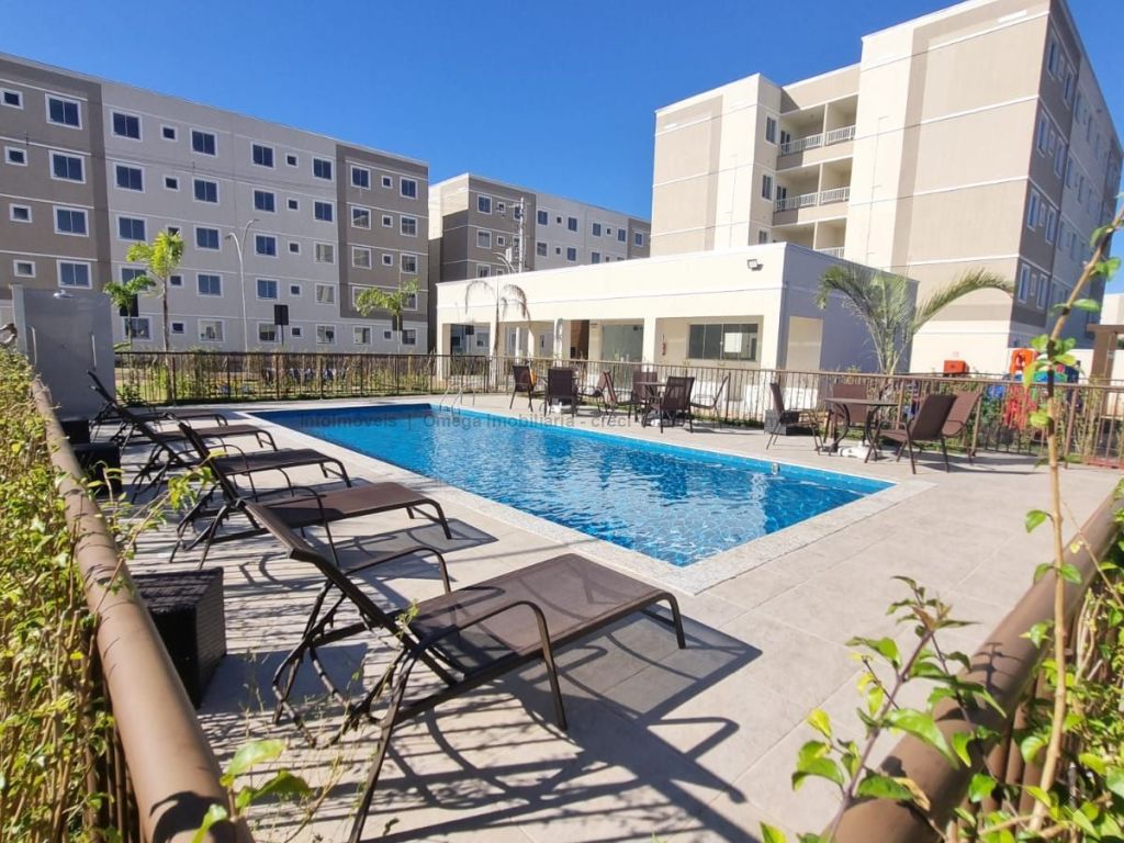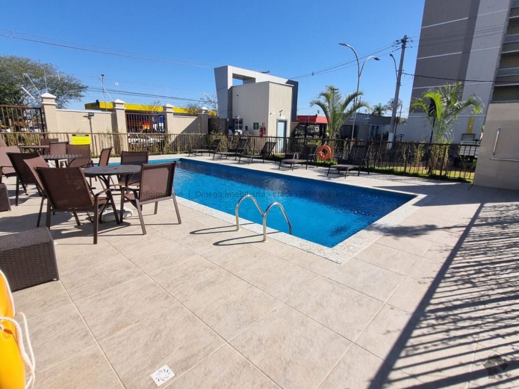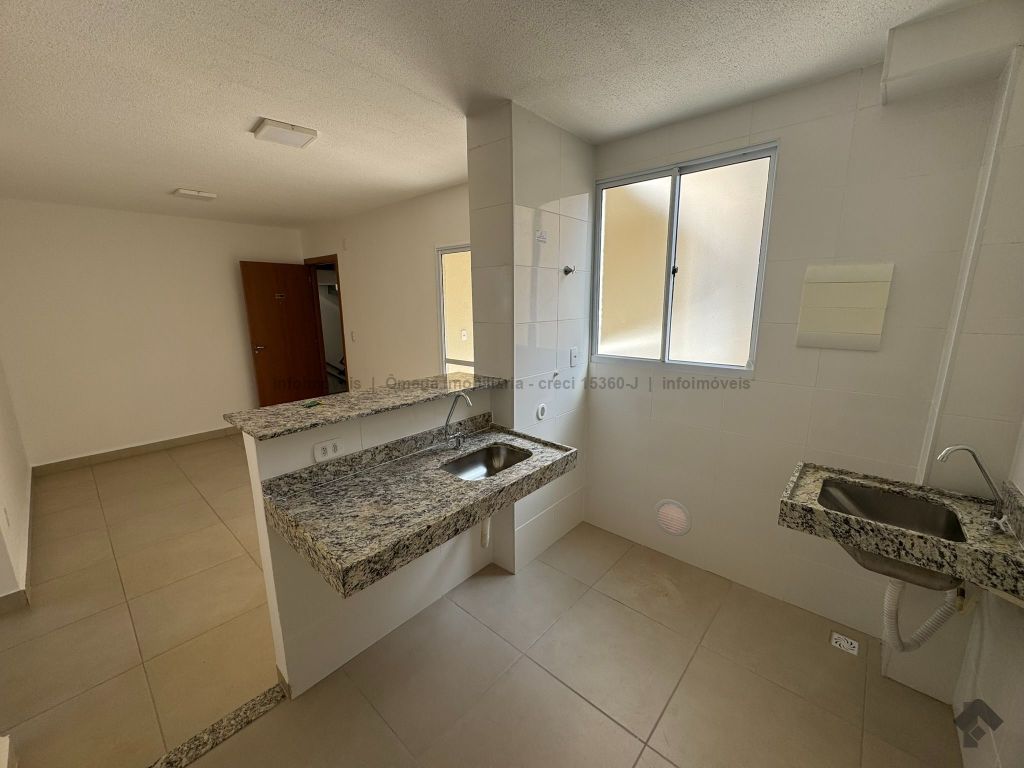 Garagem para 01 carro, cozinha, sala de TV, 02 dormitórios, 01 banho social, sacada. Área de playground para crianças, área gourmet, salão de festas, piscinas, portaria 24 horas, pet place.