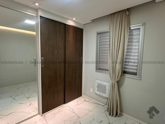 Imóvel composto por uma suíte com armário e ar condicionado, um quarto com armário e ar condicionado, e um quarto que pode ser utilizado como escritório. Na sala possui iluminação em LED no gesso, tudo automatizado. Na cozinha há armários planejados e banheiro social. O condomínio possui 4 quiosques com churrasqueira, 2 salões de festa, quadra poliesportiva, mercado autônomo e outras opções de lazer no térreo de cada torre.
