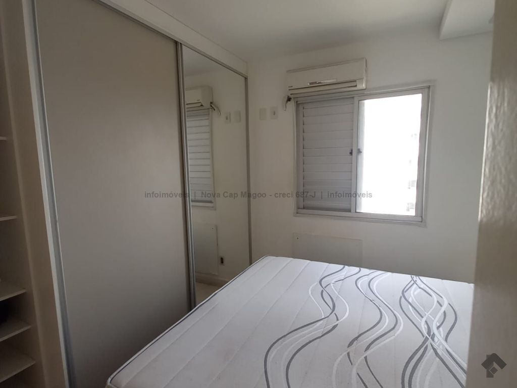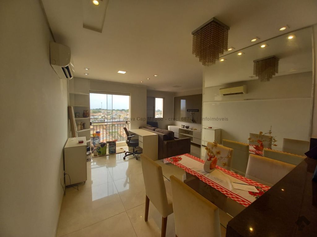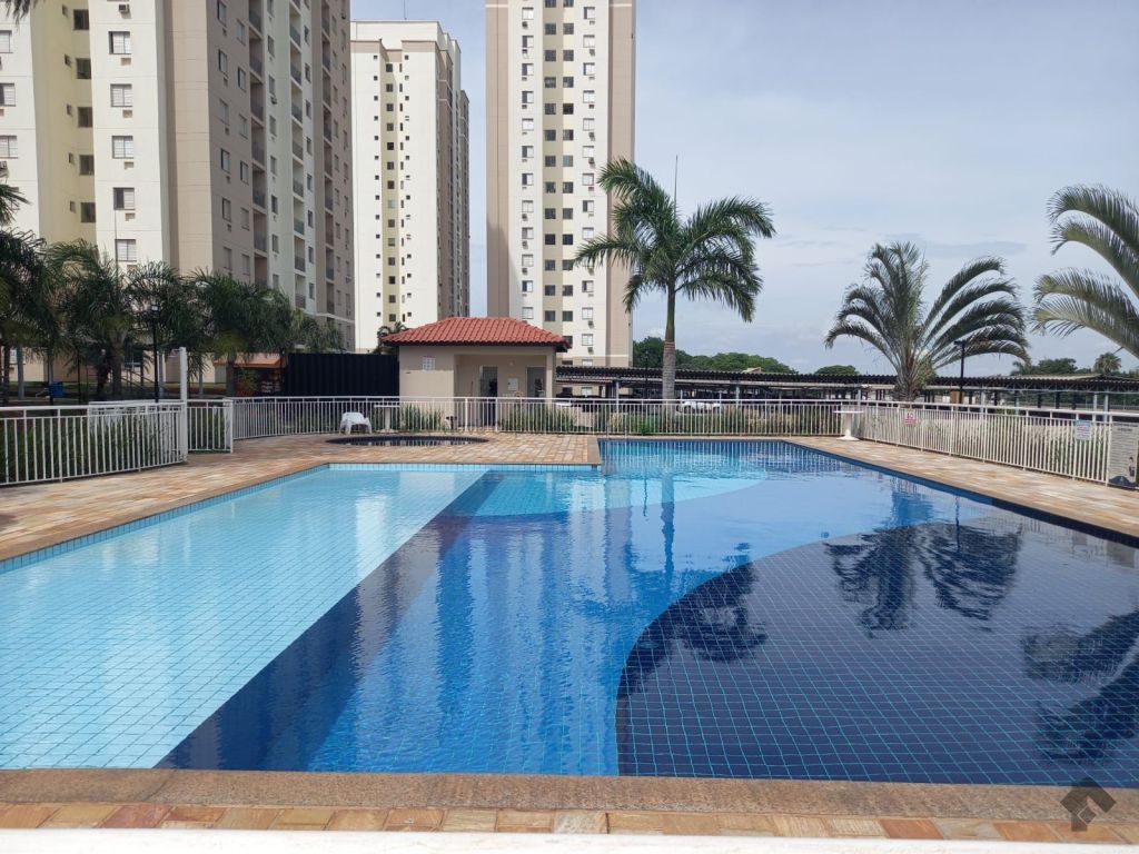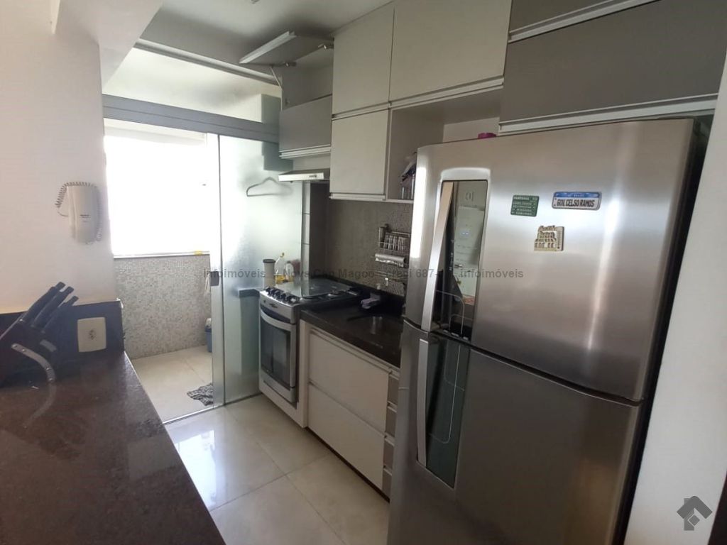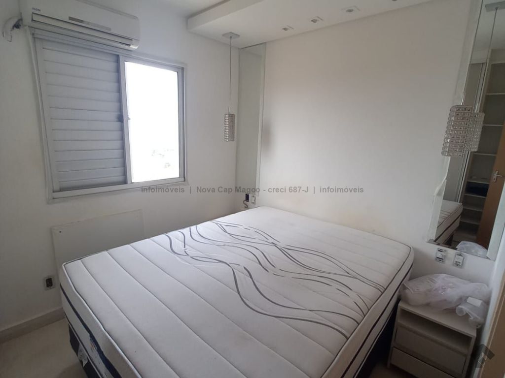 Garagem, sacada, sala com painel de TV, sofá e ar condicionado, sala de jantar com mesa contendo 6 cadeiras, cozinha planejada com geladeira, fogão embutido e exaustor, área de serviço com armário, WC social com armário, 1 quarto com armário, 1 suíte com armário, ar condicionado e cama, WC da suíte com armário. Condomínio: piscina, salão de festas, área de churrasqueira, quadra poliesportiva, playground, mini mercado.