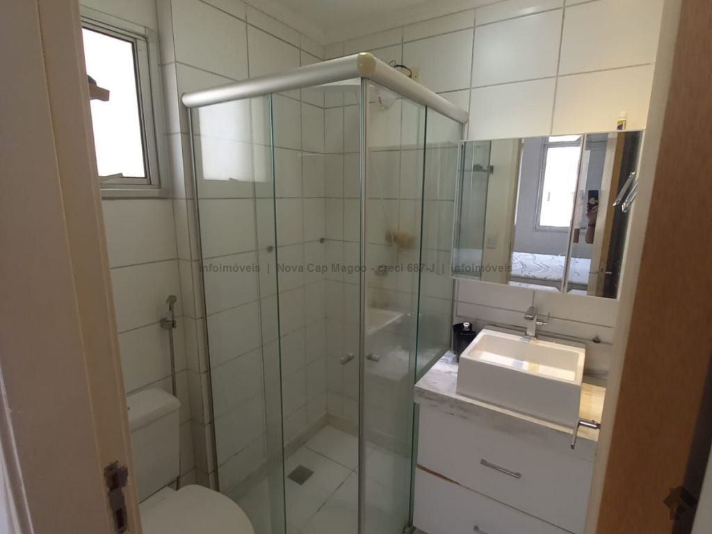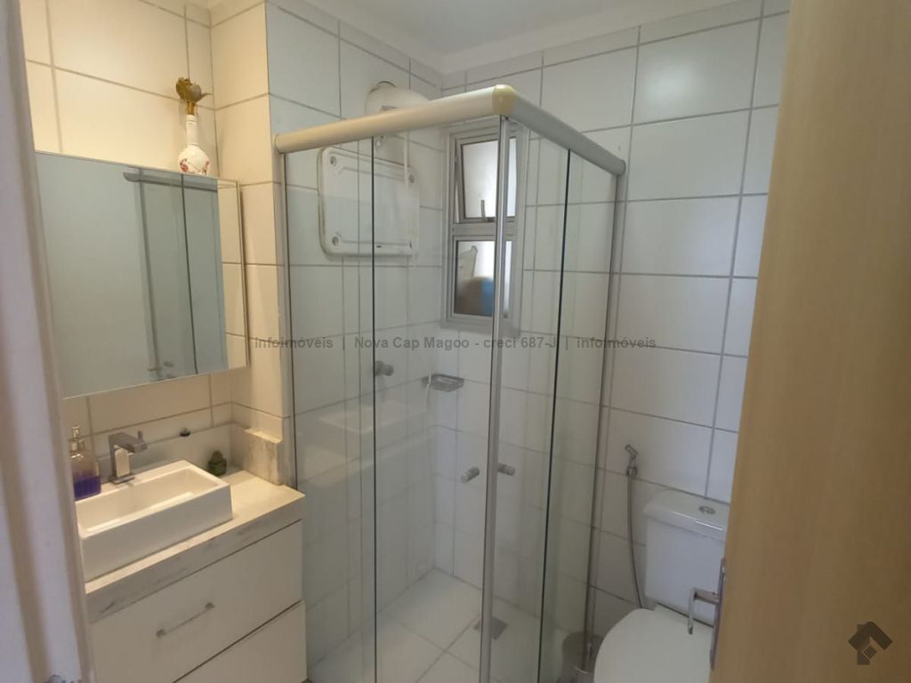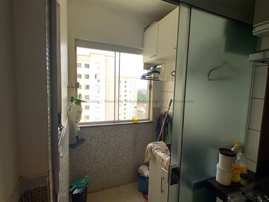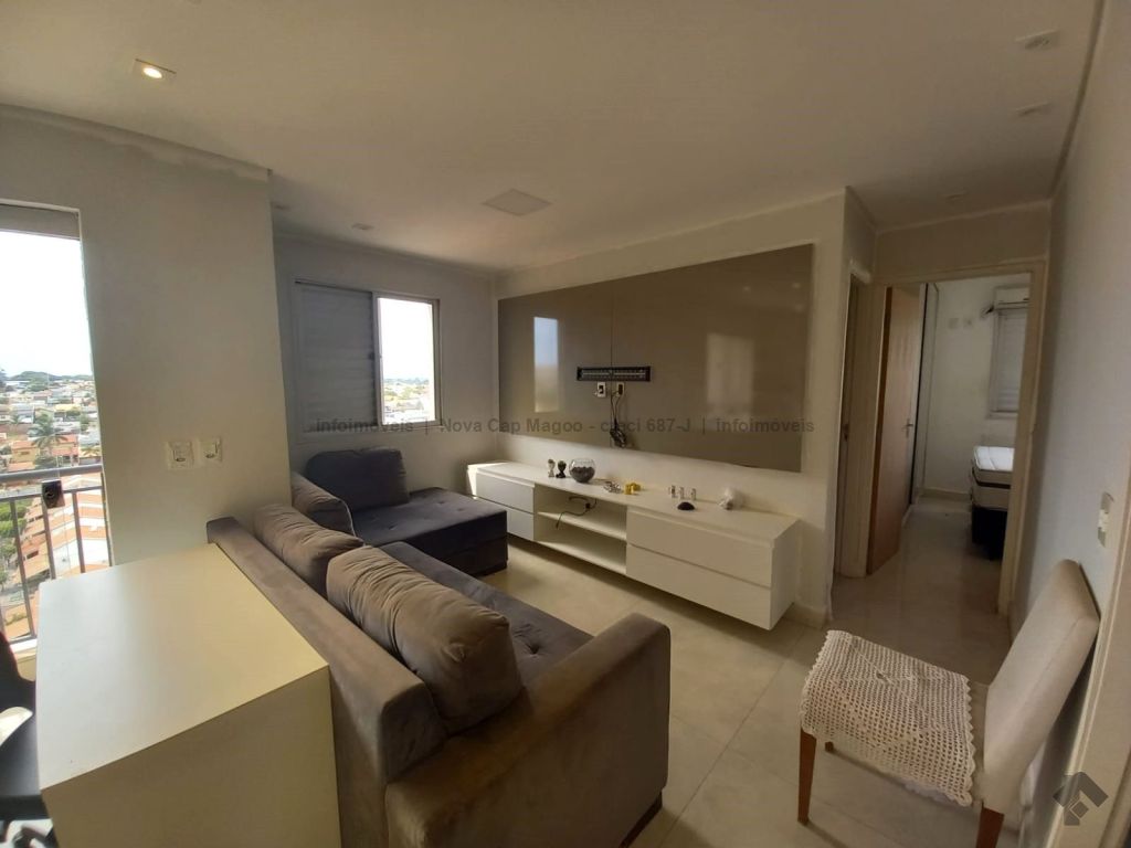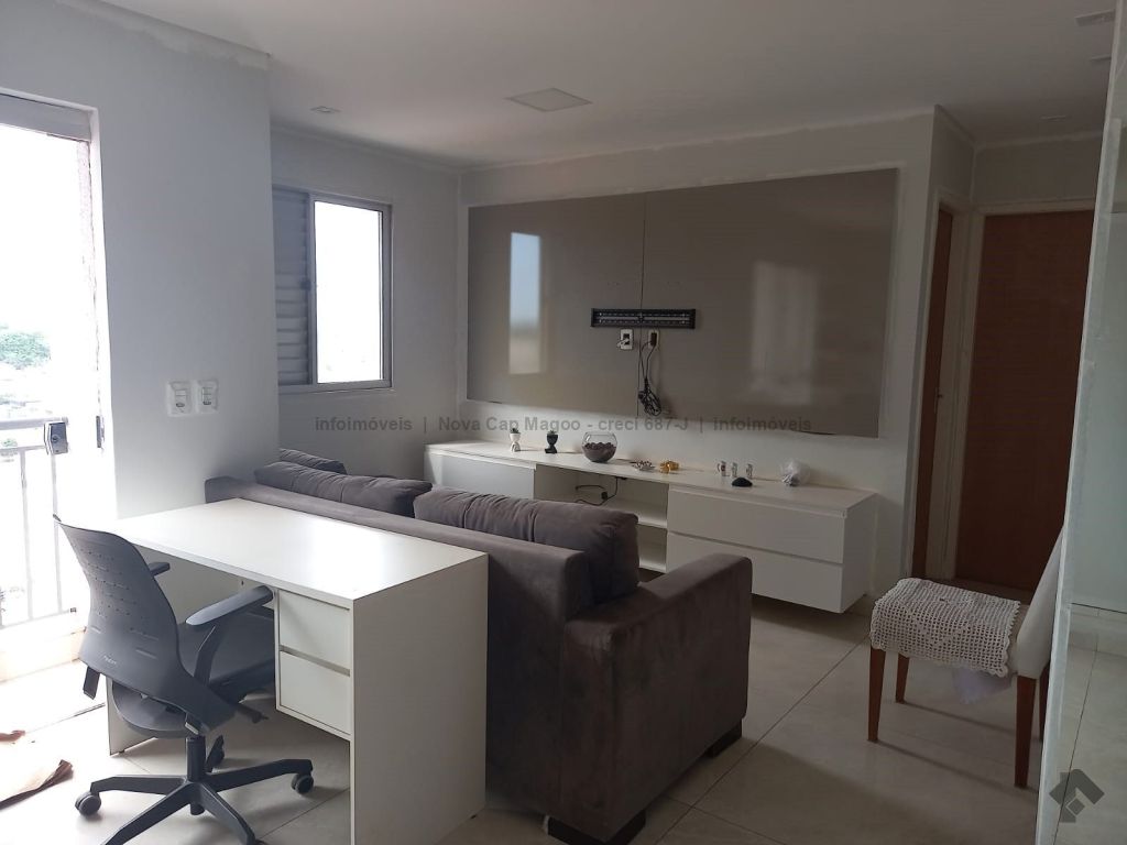 Garagem, sacada, sala com painel de TV, sofá e ar condicionado, sala de jantar com mesa contendo 6 cadeiras, cozinha planejada com geladeira, fogão embutido e exaustor, área de serviço com armário, WC social com armário, 1 quarto com armário, 1 suíte com armário, ar condicionado e cama, WC da suíte com armário. Condomínio: piscina, salão de festas, área de churrasqueira, quadra poliesportiva, playground, mini mercado.