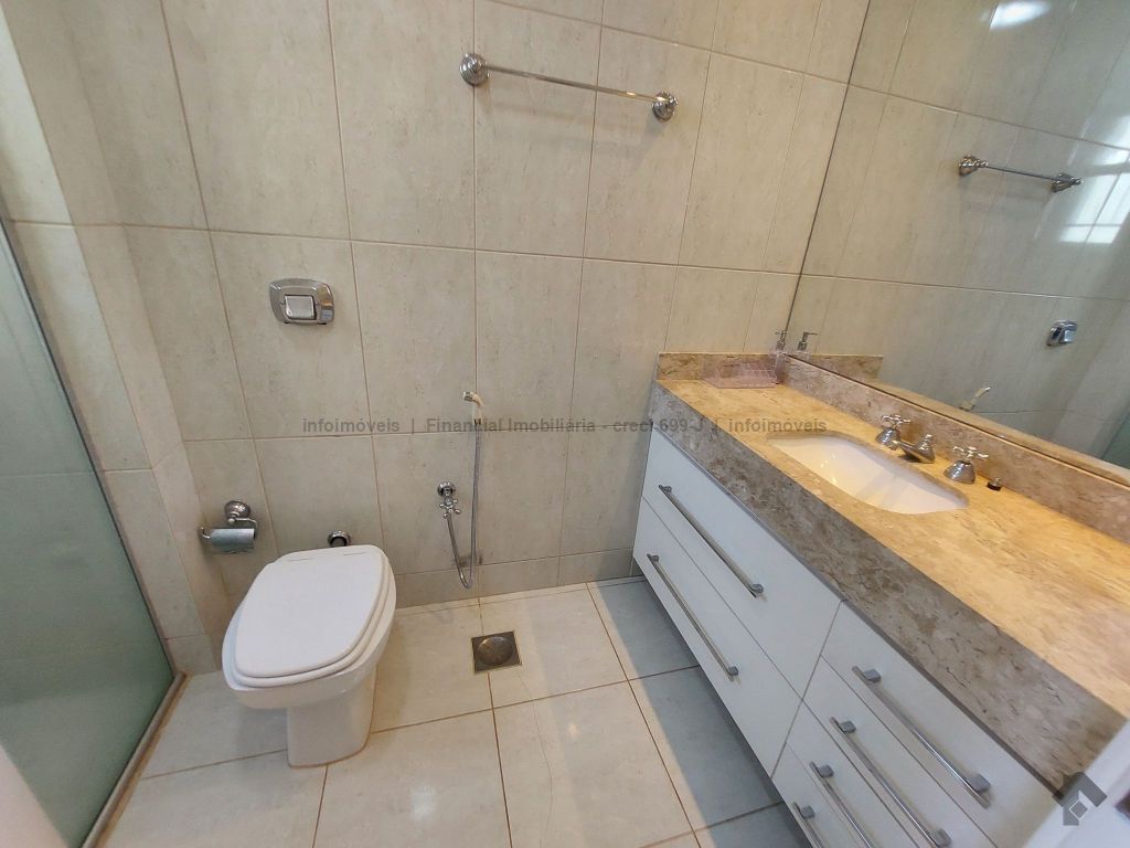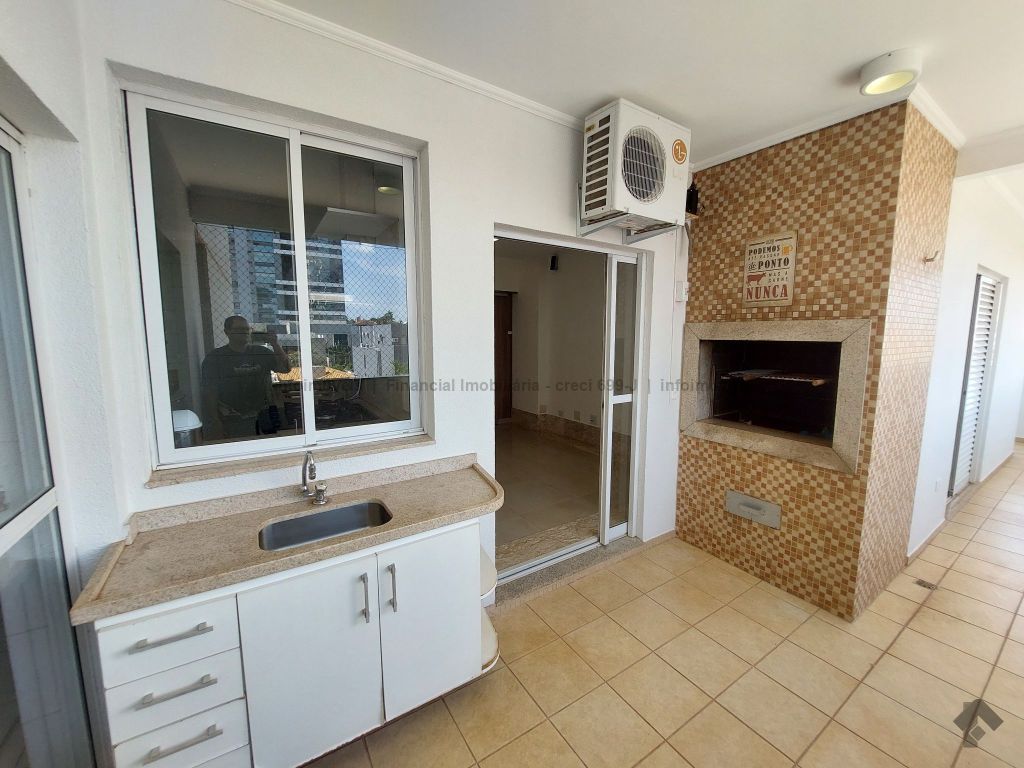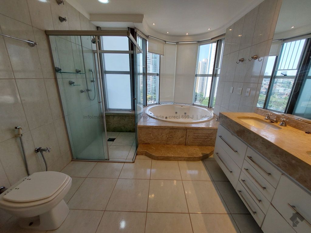 1 sala com sacada e ar condicionado, 1 sala de jantar com armário embutido, 1 sala de TV com rack e ar condicionado, 1 lavabo, 1 sacada com churrasqueira, 1 suíte com armário embutido, hidromassagem e sacada, 1 suíte com armário embutido e ar condicionado, 1 suíte com armário embutido, sacada e ar condicionado, 1 cozinha com armário embutido e fogão, 1 área de serviço com armário embutido, 1 despensa com armário embutido, 1 banheiro de serviço, 2 garagens, 1 box.