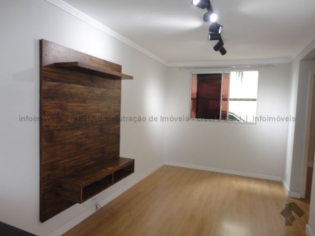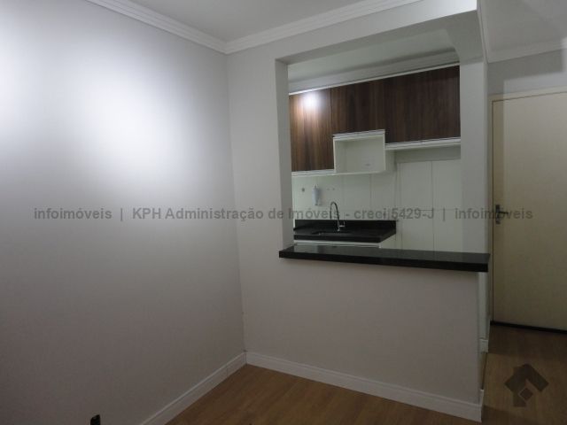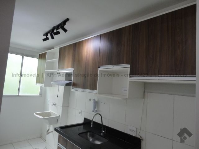 Apartamento térreo, com sala ampla, cozinha planejada, área de serviço, 2 quartos e banheiro.