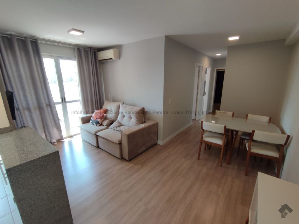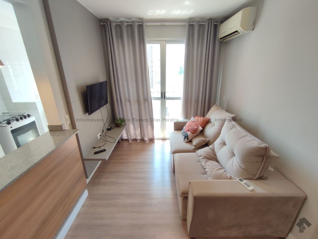 Apartamento completo, totalmente mobiliado e pronto para morar. O imóvel conta com uma sala aconchegante e mobiliada, cozinha equipada com armários e eletrodomésticos, área de serviço funcional com máquina de lavar, dois quartos com armários e camas, sendo um deles com ar-condicionado, além de uma suíte espaçosa com cama de casal e armário planejado. Dispõe ainda de um banheiro social bem distribuído e uma sacada agradável, perfeita para momentos de relaxamento.