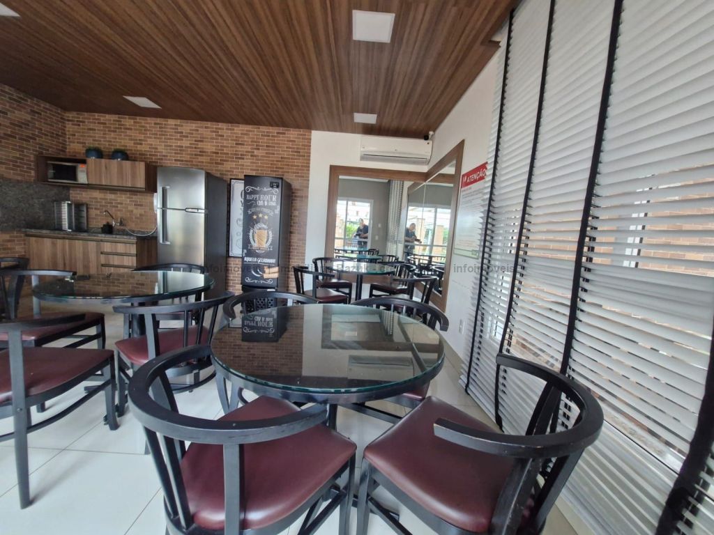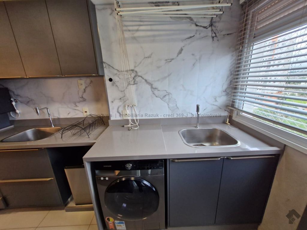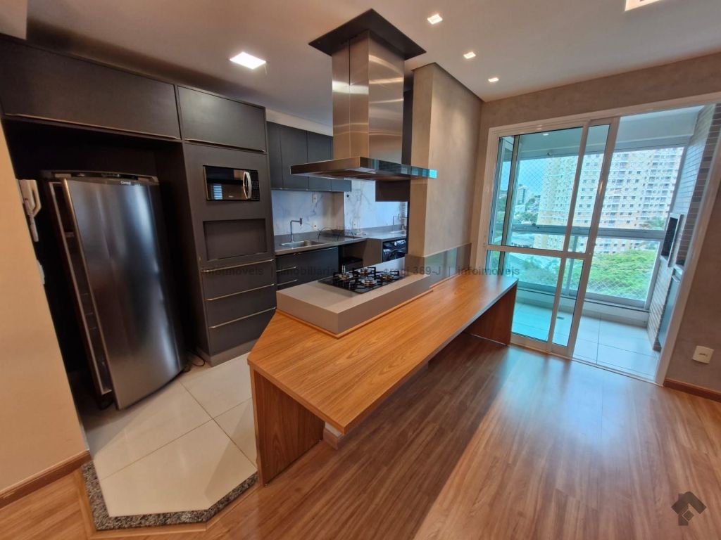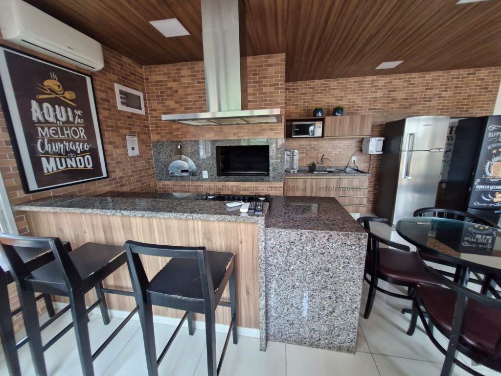 Sala com ar-condicionado, TV, sofá, mesa de jantar com 4 cadeiras e um balcão. Sacada com churrasqueira e armário embaixo da pia. Cozinha com armários planejados, geladeira, micro-ondas, cooktop e exaustor. 1 suíte com armários, cama box e ar-condicionado, e banheiro com box blindex e pia com armário. 1 quarto com armário, cama box e ar-condicionado. Banheiros com box blindex e pia com armário. Área de serviço com armário, máquina de lavar e secar. 2 vagas de garagem. Condomínio com área de lazer, salão de festas com churrasqueira, piscinas, parquinho infantil, sala de jogos, mercadinho, lavanderia, academia e espaço de beleza.