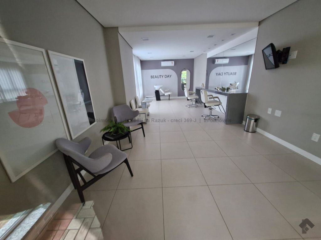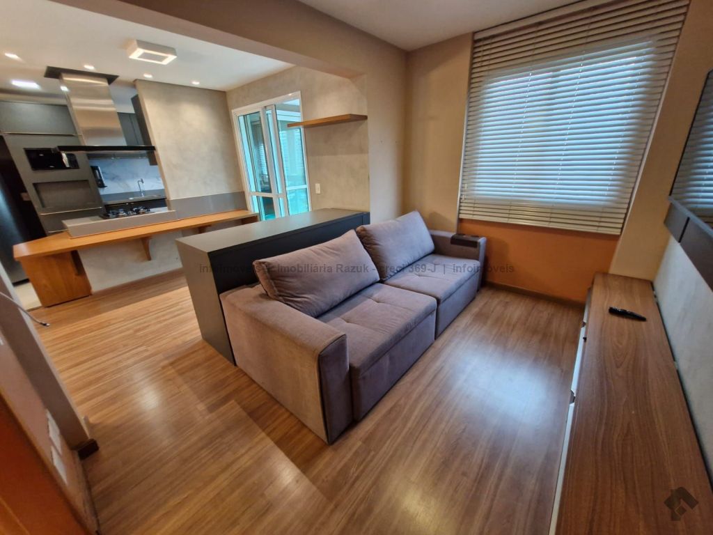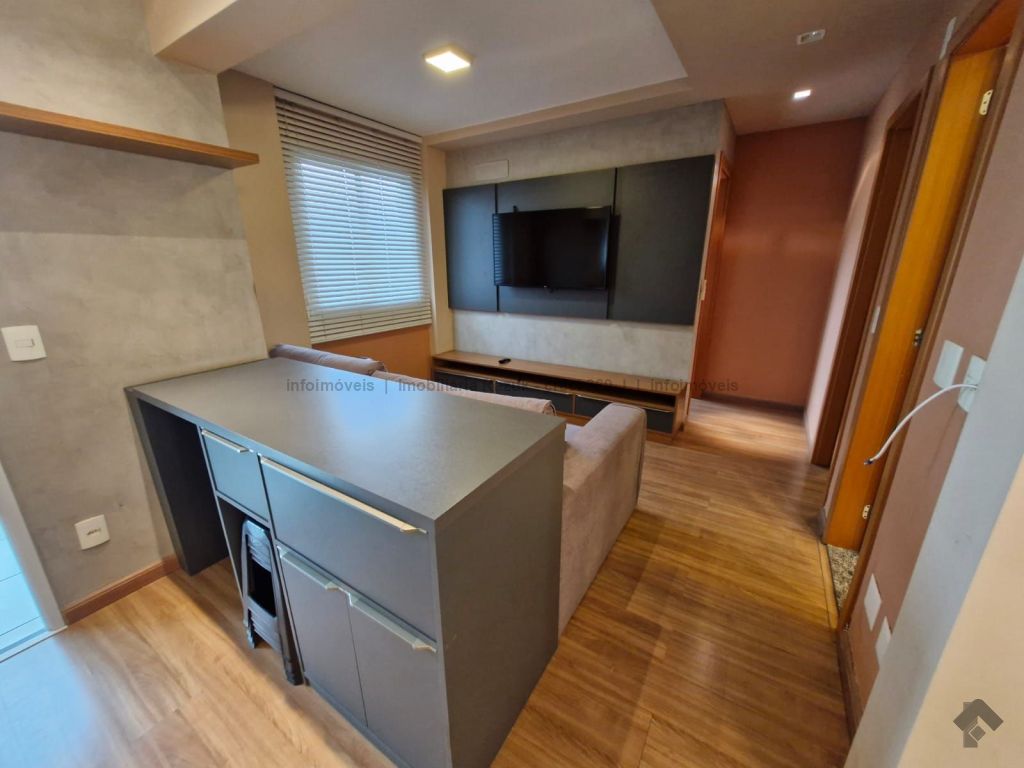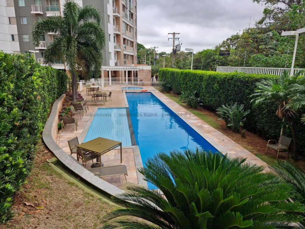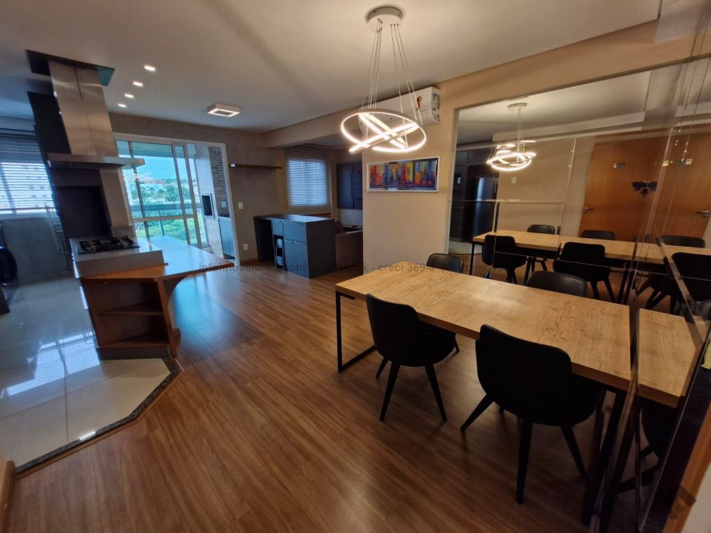 Sala com ar-condicionado, TV, sofá, mesa de jantar com 4 cadeiras e um balcão. Sacada com churrasqueira e armário embaixo da pia. Cozinha com armários planejados, geladeira, micro-ondas, cooktop e exaustor. 1 suíte com armários, cama box e ar-condicionado, e banheiro com box blindex e pia com armário. 1 quarto com armário, cama box e ar-condicionado. Banheiros com box blindex e pia com armário. Área de serviço com armário, máquina de lavar e secar. 2 vagas de garagem. Condomínio com área de lazer, salão de festas com churrasqueira, piscinas, parquinho infantil, sala de jogos, mercadinho, lavanderia, academia e espaço de beleza.