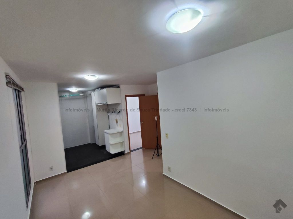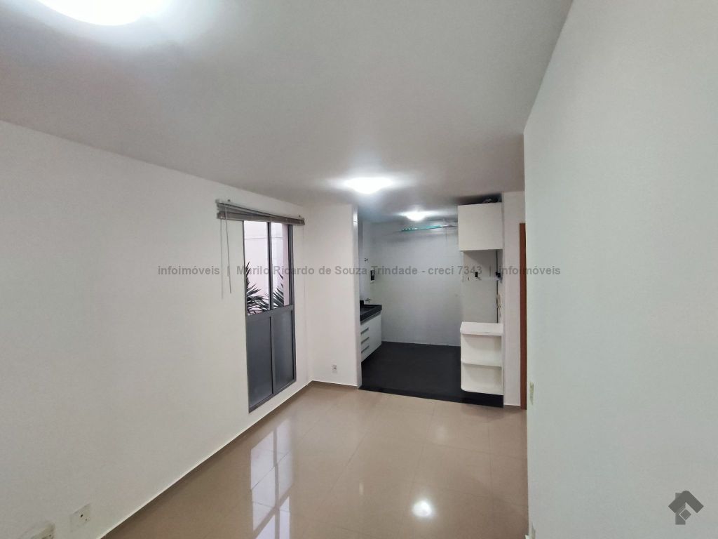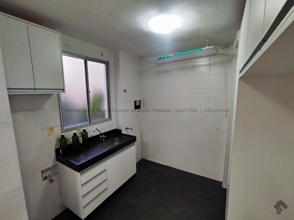 Amplo apartamento com cozinha planejada, possuindo dois quartos, um banheiro social e uma vaga de garagem.