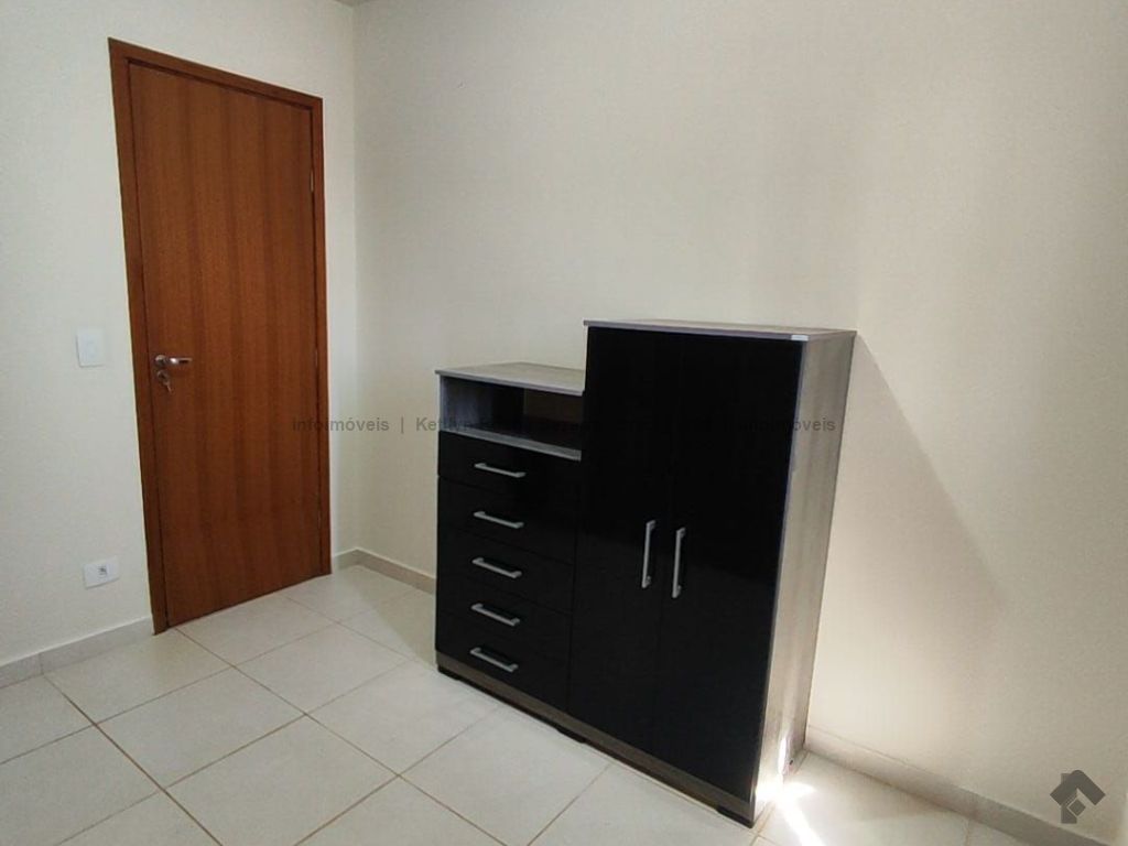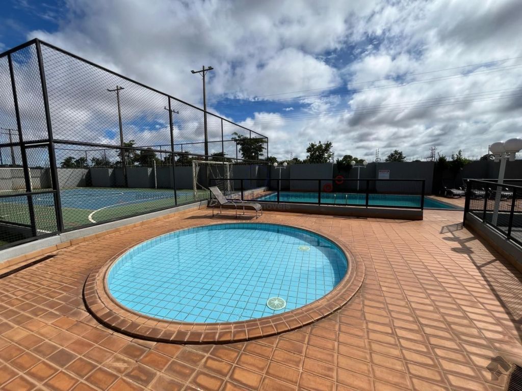 2 quartos (sendo 1 com ar-condicionado e guarda-roupa planejado, no outro painel de TV), sala aconchegante, cozinha com armário e geladeira, banheiro com box de vidro, 1 vaga de garagem coberta. Condomínio completo com piscina adulto e infantil, quadra poliesportiva, salão de festas e portaria eletrônica 24h.