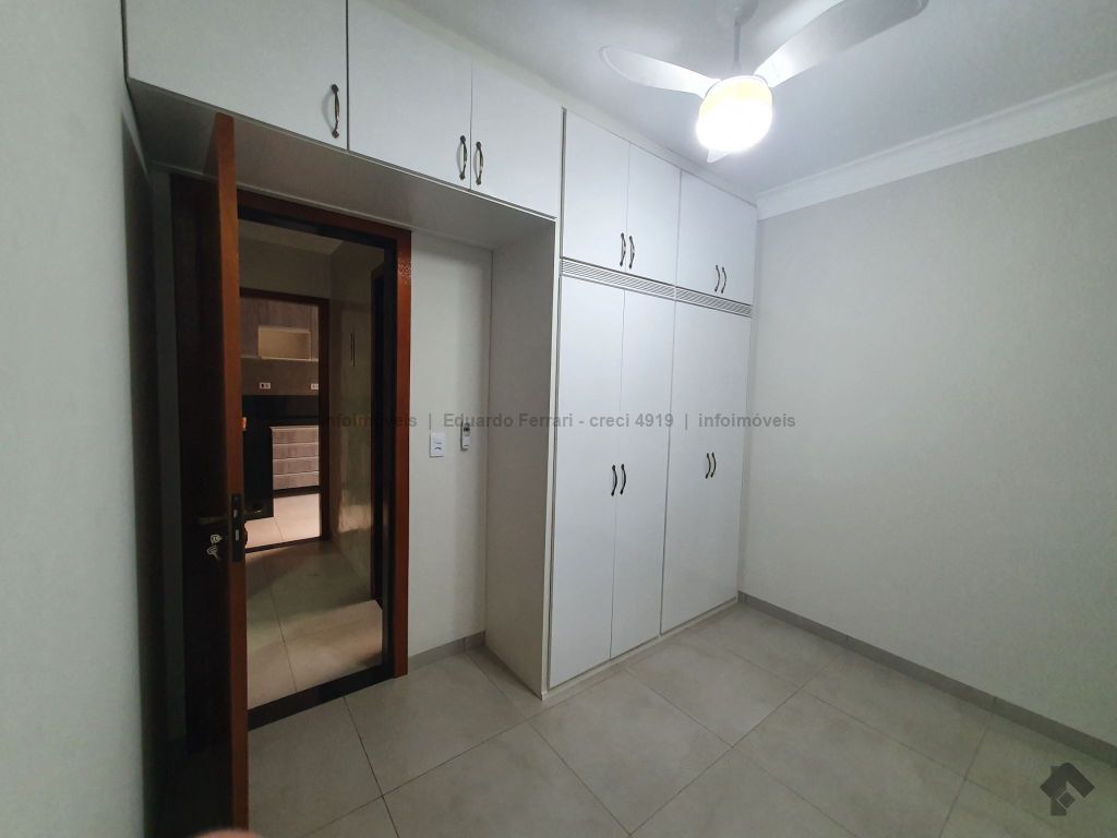 Imóvel com ar-condicionado em um dos quartos e ventilador no outro, cozinha planejada.
