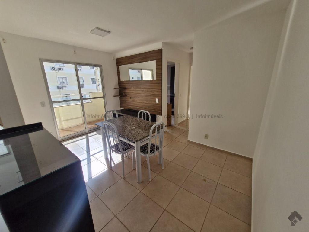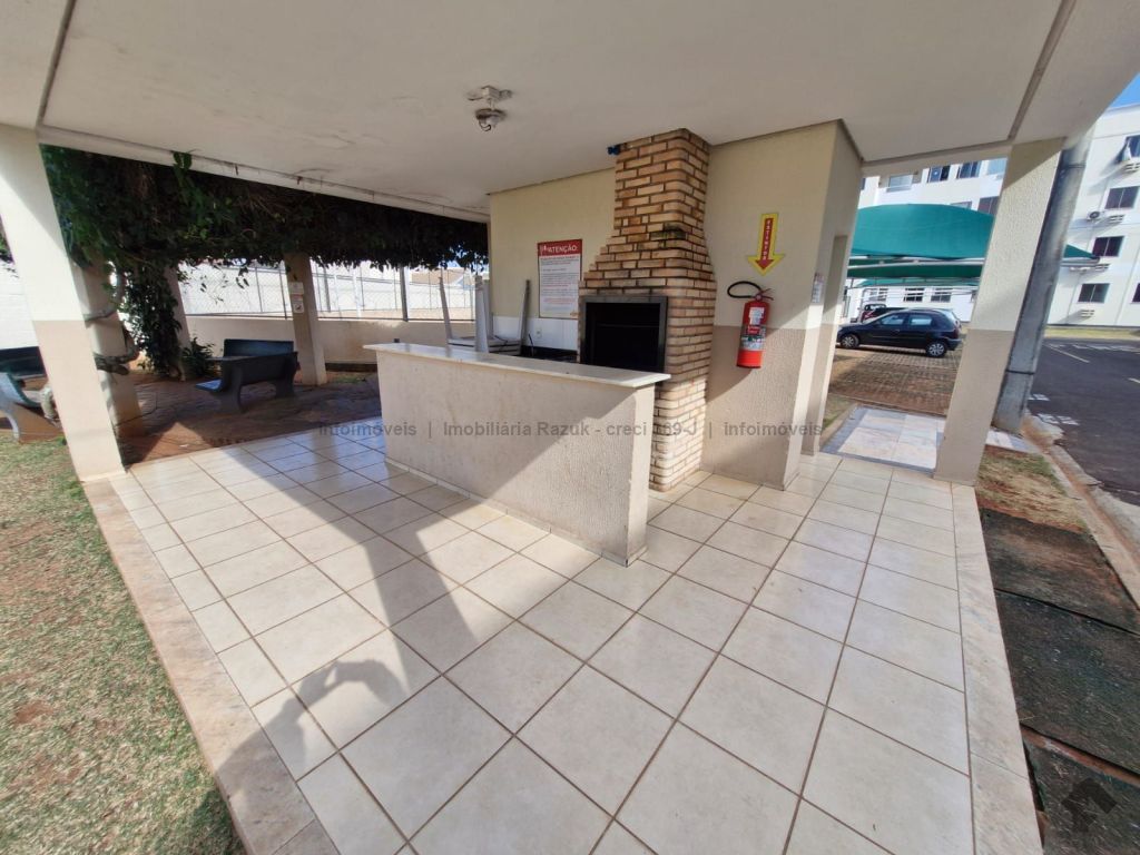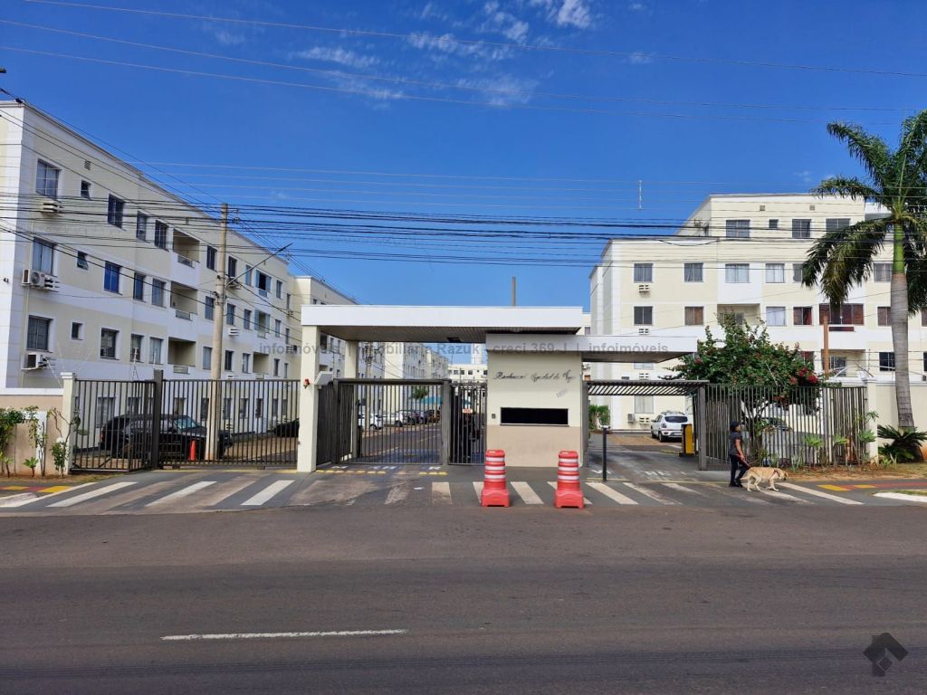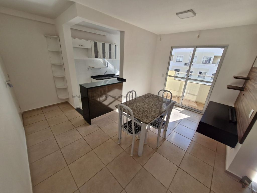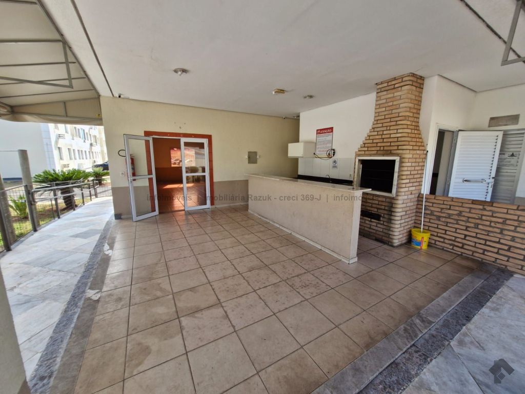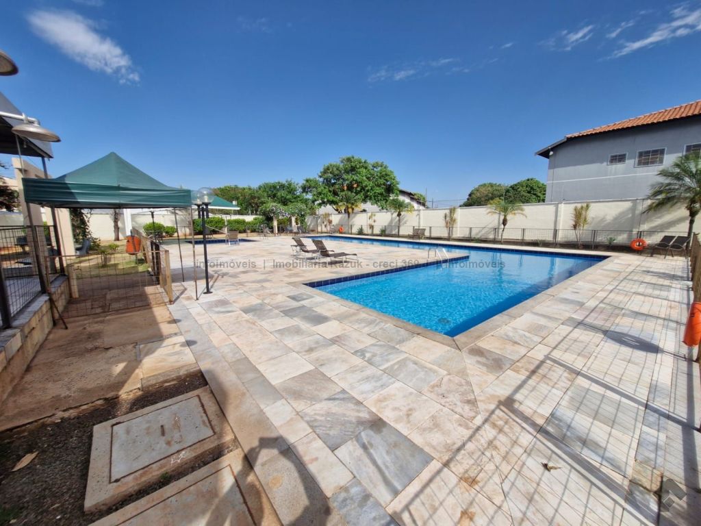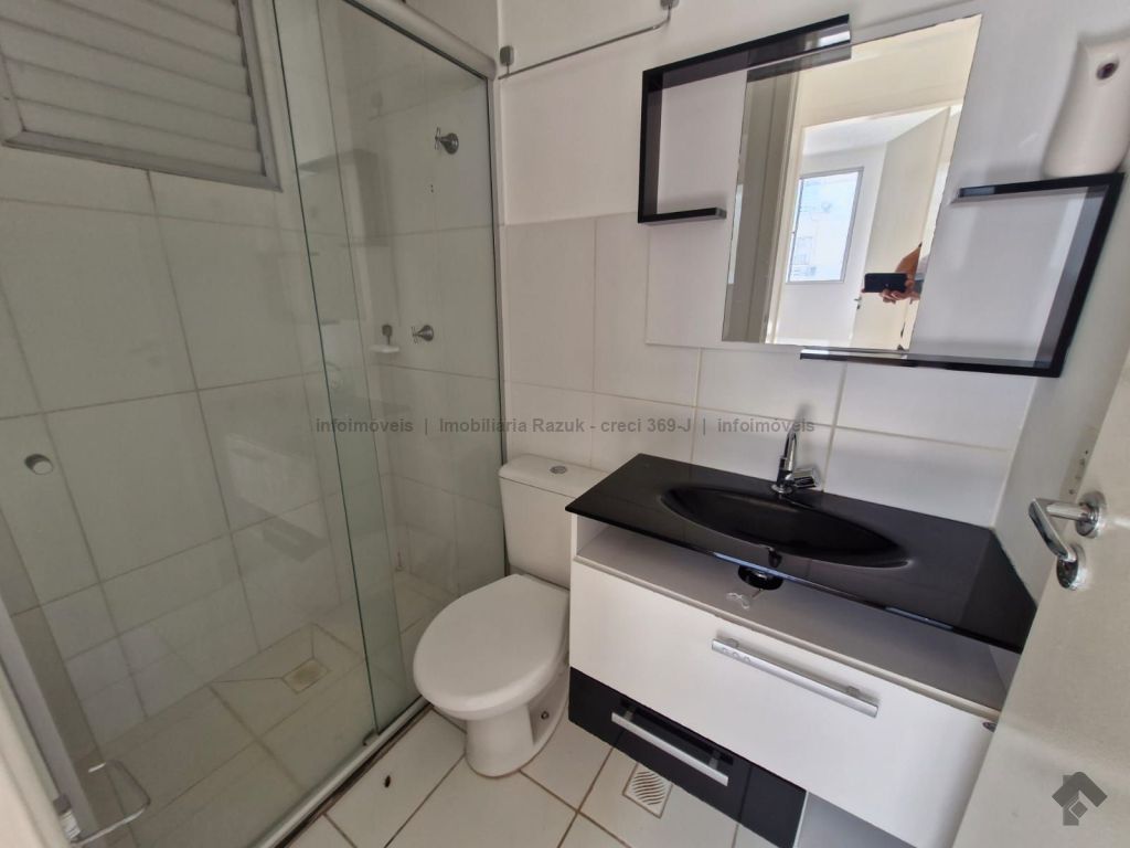 Sala com sacada, painel para TV e mesa com 4 cadeiras. Cozinha com armários, fogão e balcão. 2 quartos, sendo um com guarda-roupa e outro com cabeceira de cama. WCs com armário e box blindex. Área de serviço com armário. Condomínio com área de lazer, quadra de esportes, quiosque com churrasqueira e fogão, piscina, salão de festas com churrasqueira e fogão, e academia.