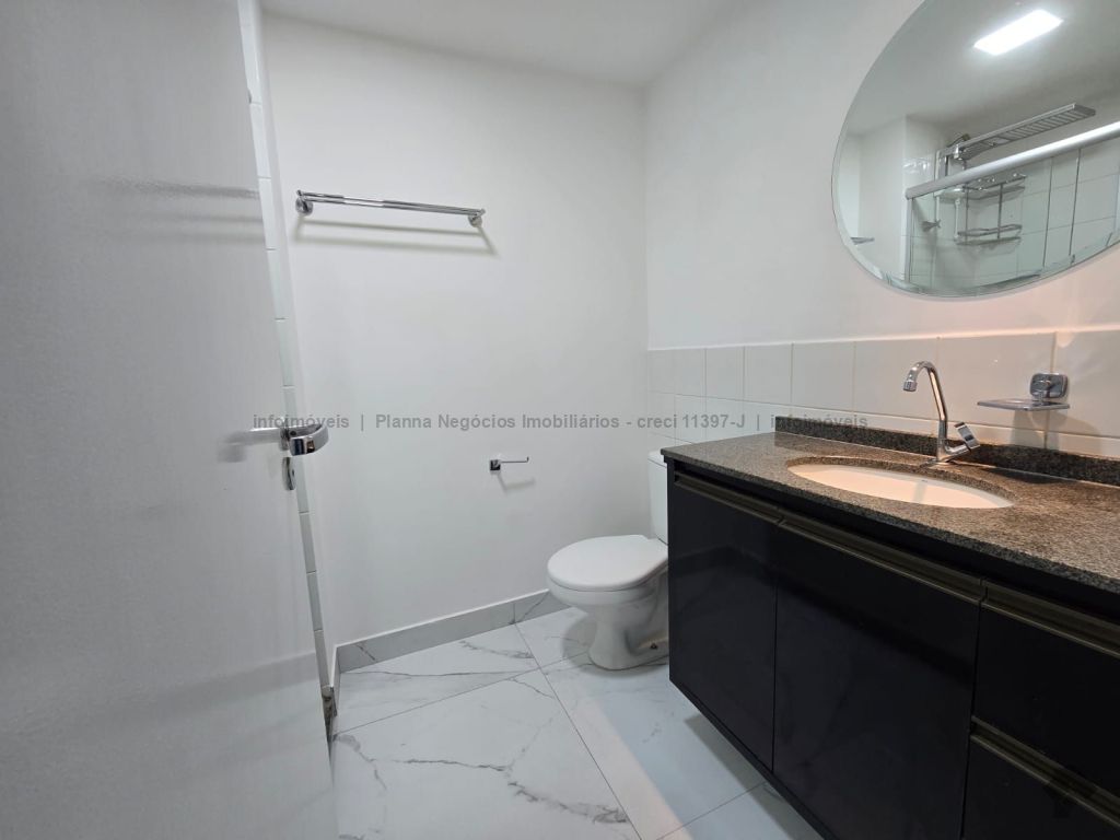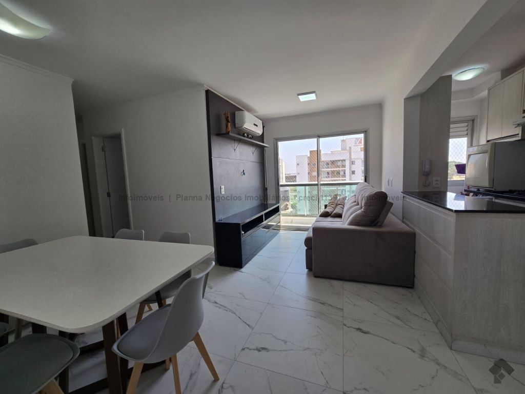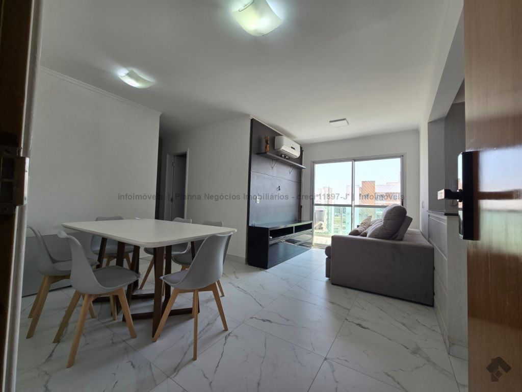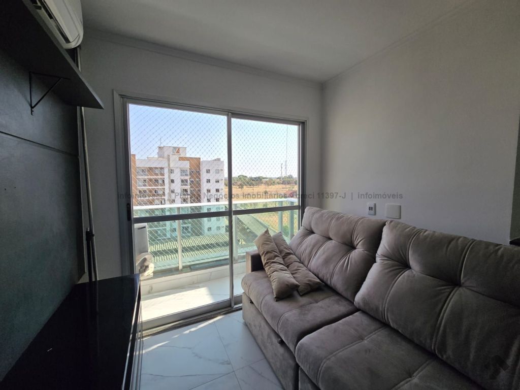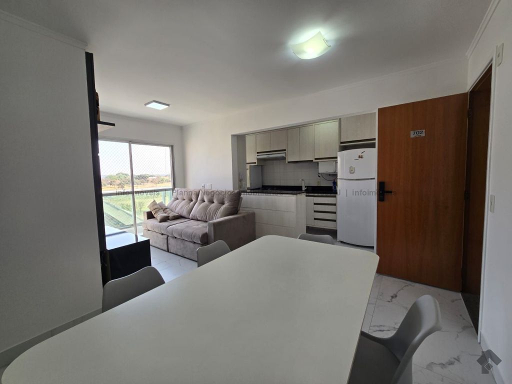Apartamento para aluguel com 3 quartos, sendo 1 suíte, com mobília. 1 suíte com cama e planejados, os dois banheiros com planejados. Sala com mesa, sofá, cozinha com geladeira e planejados. 4 km do Shopping Campo Grande, 3 km da Uniderp. 7º andar, sol nascente.