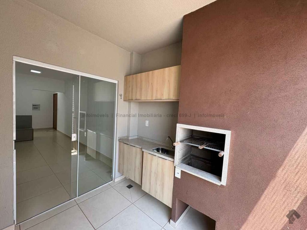 1 cozinha com armário embutido, 1 lavanderia, 1 sala de estar para 2 ambientes, 1 sacada gourmet, 1 quarto, 1 suíte, 1 banheiro social com box e gabinete, 1 garagem coberta.