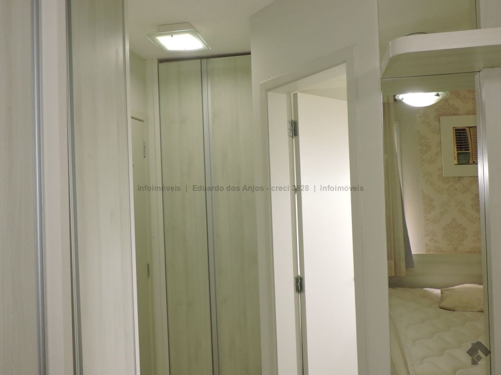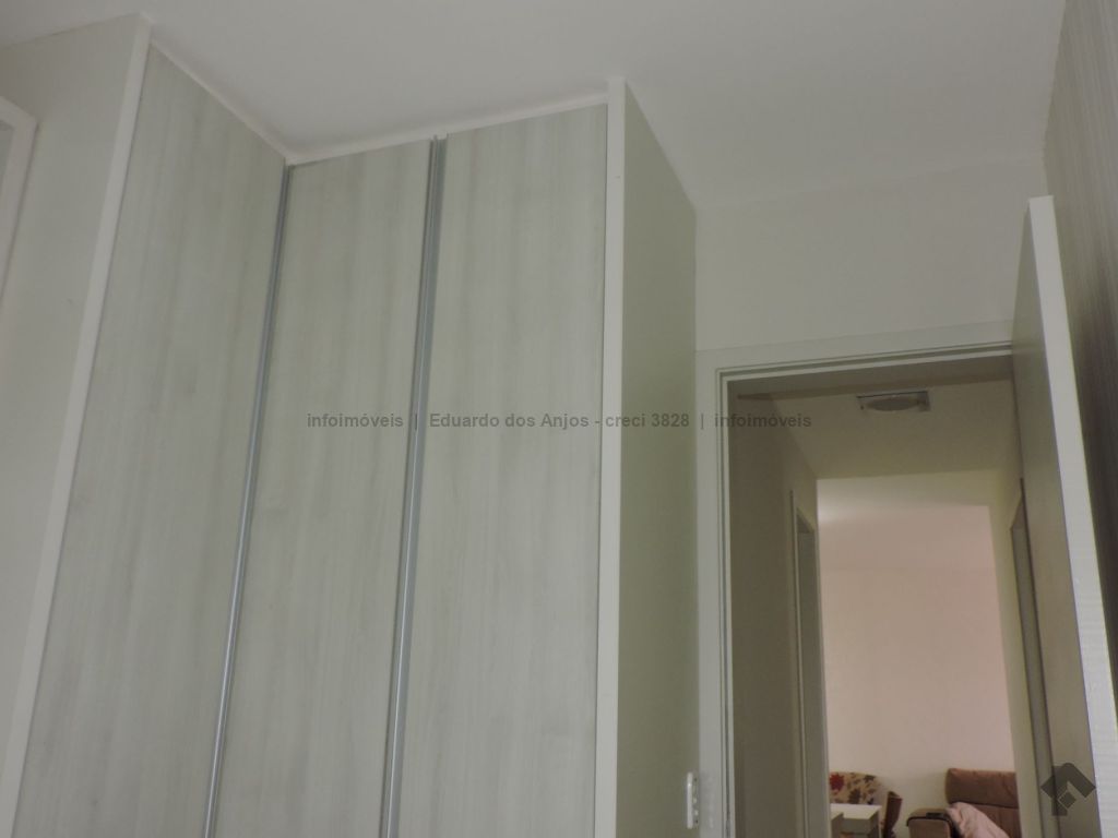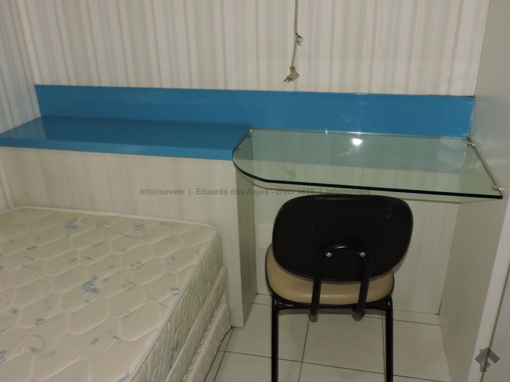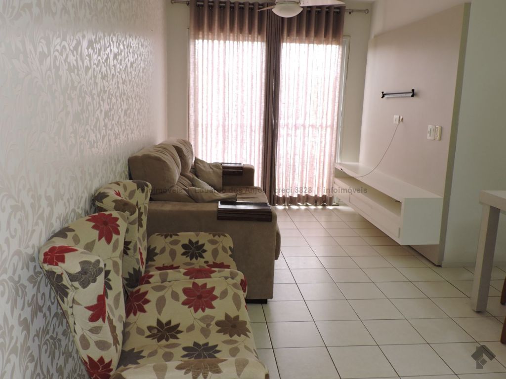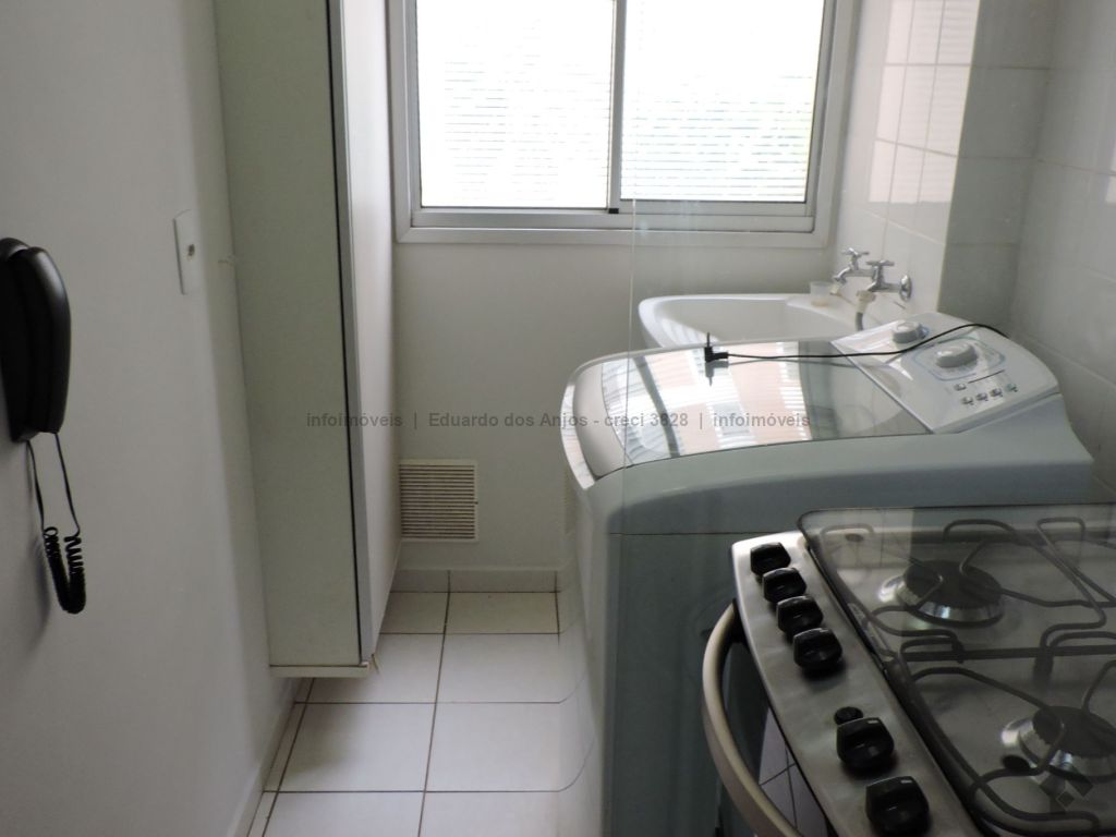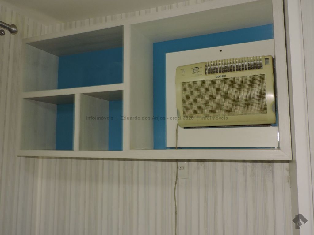 Sala de estar com sofá, duas cadeiras, painel para TV, ventilador de teto, sala de jantar com mesa e cinco cadeiras, 2 quartos com armários embutidos, cama box casal e um solteiro, ambos com ar condicionado. Apartamento com armário embutido, painel para TV, cama box casal, ar condicionado e ventilador de teto. WC da suíte com gabinete da pia e box Blindex. Cozinha com armários planejados, geladeira, fogão e exaustor. Área de serviço com máquina de lavar e armário. 1 vaga de garagem. Apartamento térreo com amplo quintal.