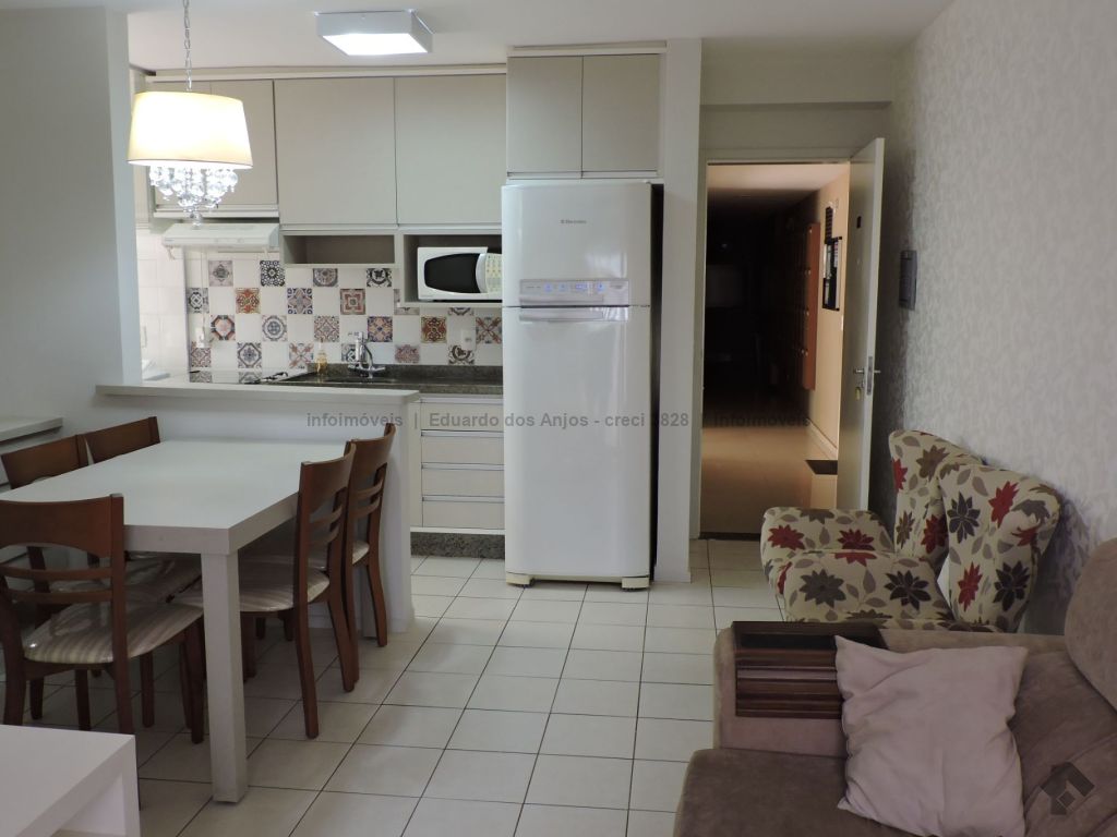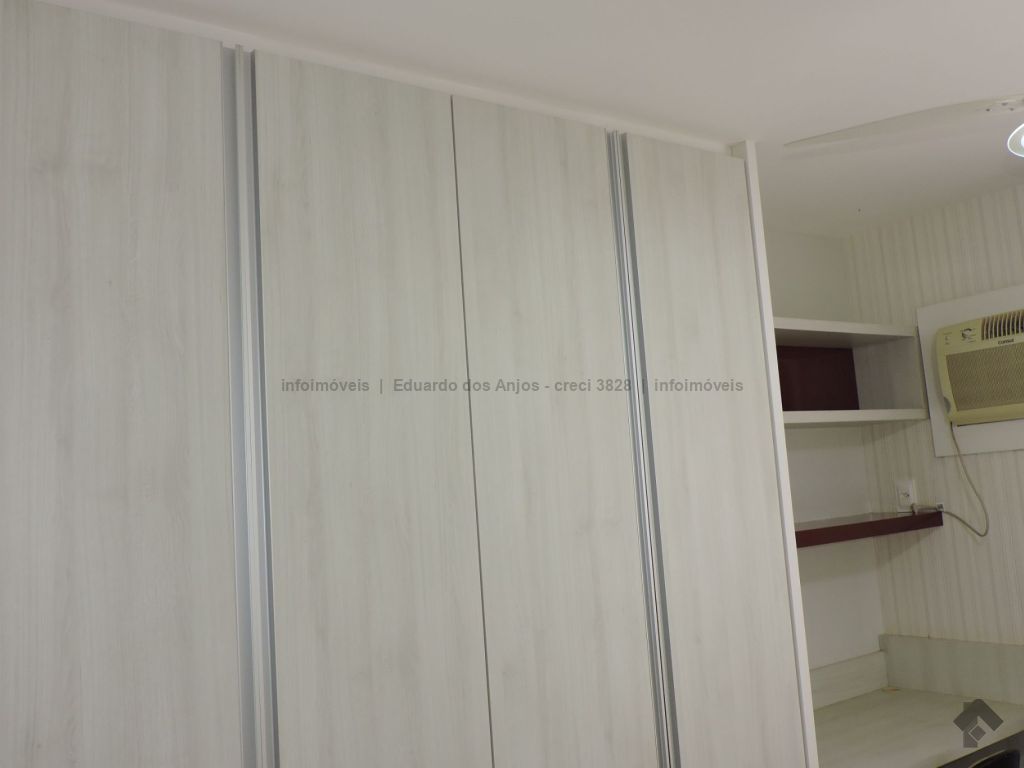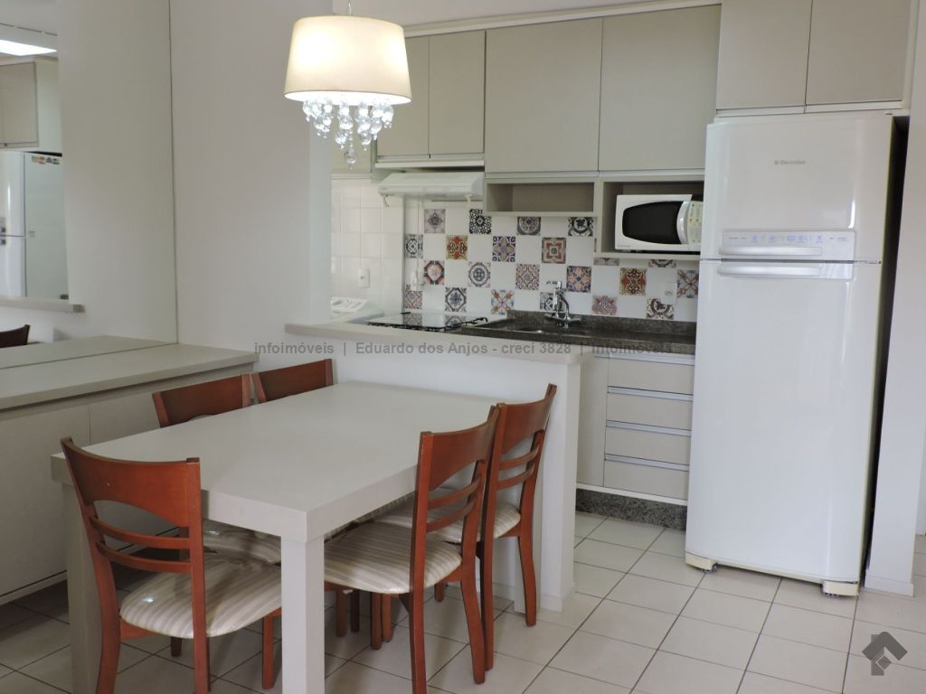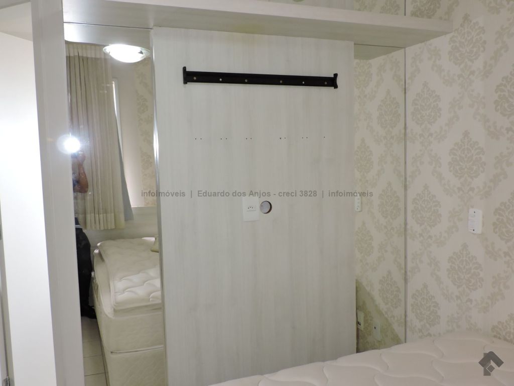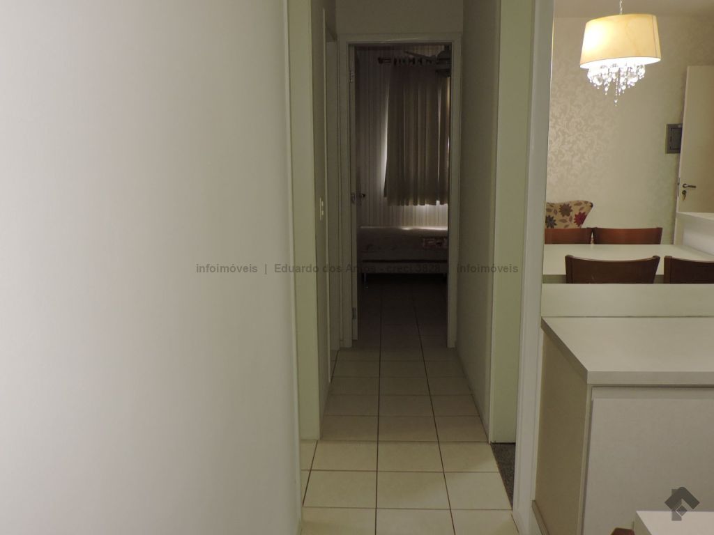 Sala de estar com sofá, duas cadeiras, painel para TV, ventilador de teto, sala de jantar com mesa e cinco cadeiras, 2 quartos com armários embutidos, cama box casal e um solteiro, ambos com ar condicionado. Apartamento com armário embutido, painel para TV, cama box casal, ar condicionado e ventilador de teto. WC da suíte com gabinete da pia e box Blindex. Cozinha com armários planejados, geladeira, fogão e exaustor. Área de serviço com máquina de lavar e armário. 1 vaga de garagem. Apartamento térreo com amplo quintal.