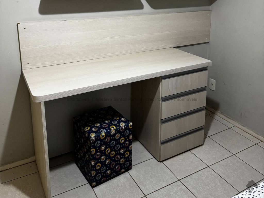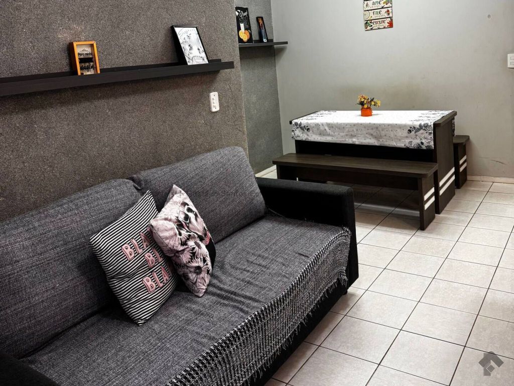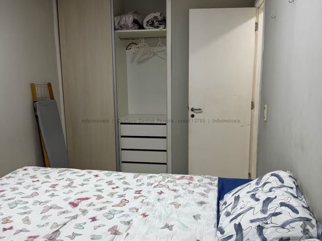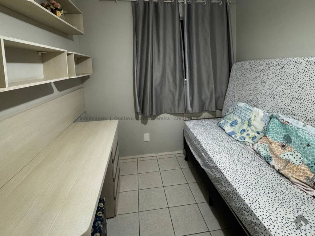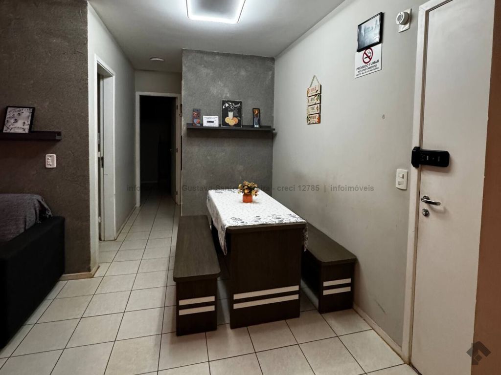 Apartamento totalmente mobiliado e pronto para morar. Contendo: sala equipada com TV tela plana, sofá de 3 lugares, ventilador de teto, cortina e sacada, sala de jantar com mesa de 4 lugares, cozinha americana planejada com geladeira duplex, micro-ondas, fogão de 4 bocas e cafeteira elétrica, área de serviço com máquina de lavar, tanque e varal, banheiro social, 2 dormitórios com armários, sendo um com cama box de casal e ar condicionado e o outro com bi-cama, ventilador de teto e bancada para estudo, porta com fechadura digital, 1 vaga de garagem coberta.