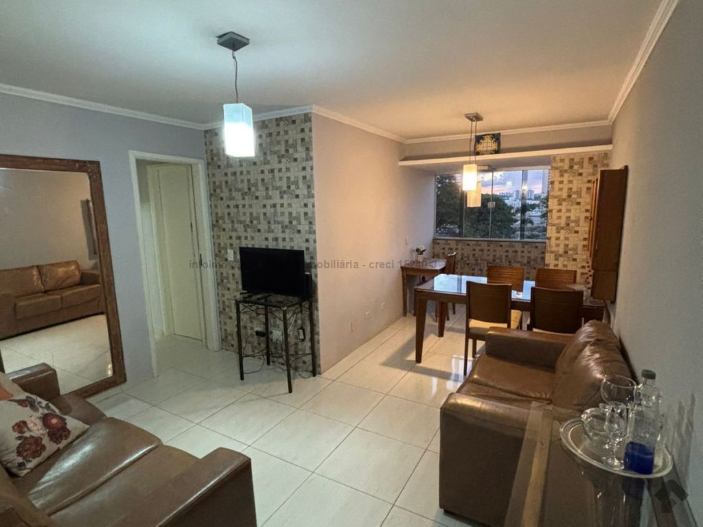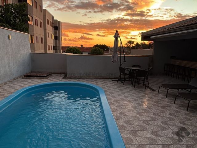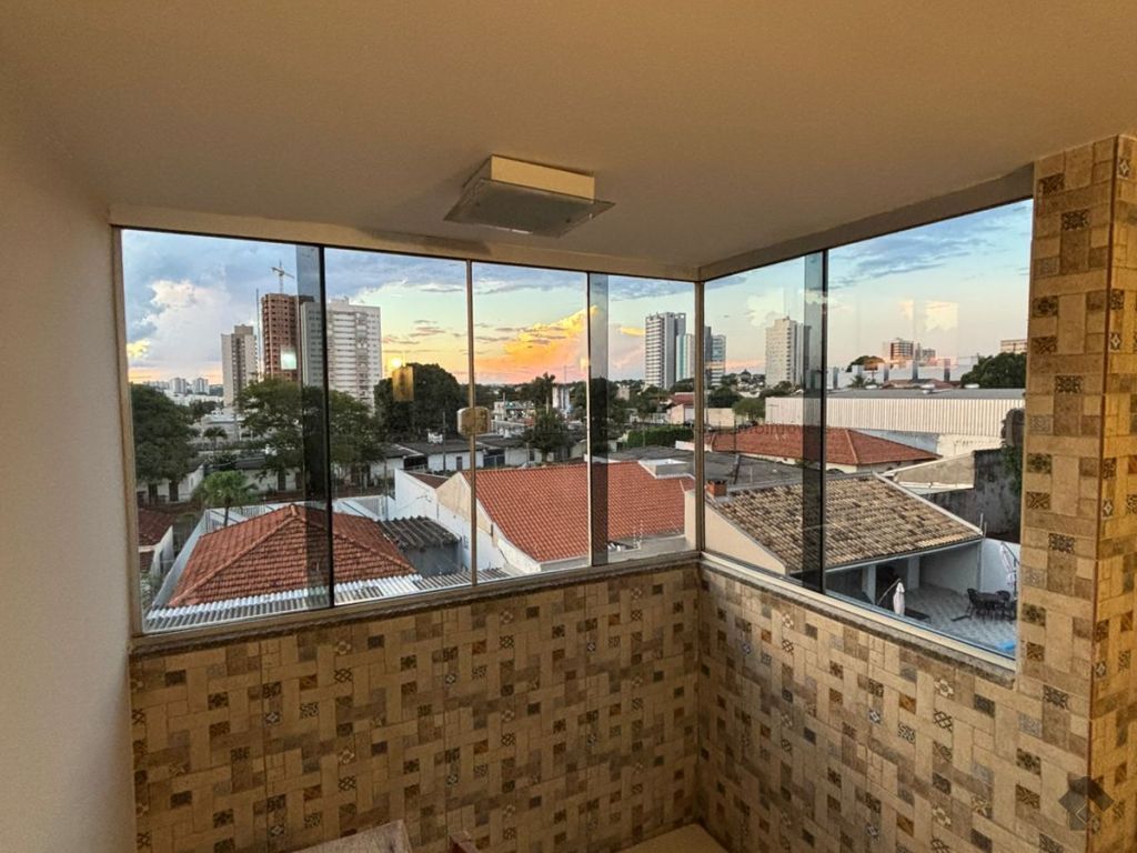 3 quartos, banheiro, lavanderia, cozinha, sala com living, sacada com soleira e vidro blindex na janela, área de lazer completa, churrasqueira, piscina. Não possui elevador.